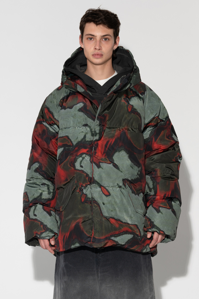 В преддверии Нового года на втором этаже «Цветного» у Red September появилось ретейл-пространство за пределами шоурума. Поверхности в интерьере корнера стилизованы под бетон, на полу — ковер ручной работы, созданный коллективом Taorugs. В пространстве представлены хиты бренда — пуховики с принтами, напоминающими разлитый бензин на асфальте. Они легкие, непромокаемые и теплые — внутри натуральный наполнитель из гусиного пуха/пера.