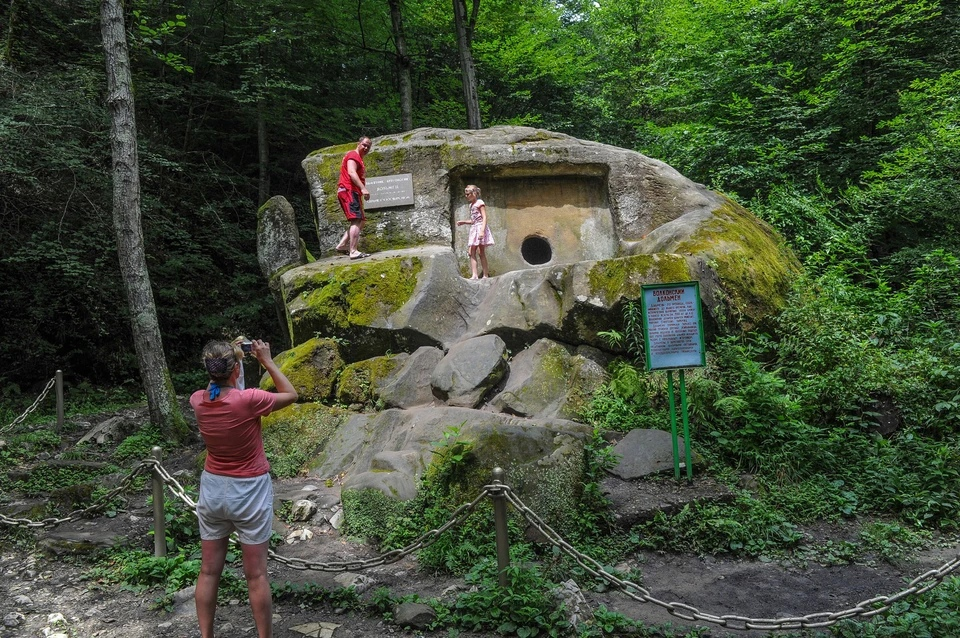Одним из самых популярных сочинских мегалитов является жертвенный камень, расположенный в Кудепстинском дендропарке. Форма валуна с небольшими углублениями сверху в виде некоего ложа и высеченными каналами, которые возможно служили для отвода крови, говорит о том, что на нем могли лежать люди, приносимые в жертву во время ритуала символического возрождения либо безвременно усопшие, которых тут отпевали.
