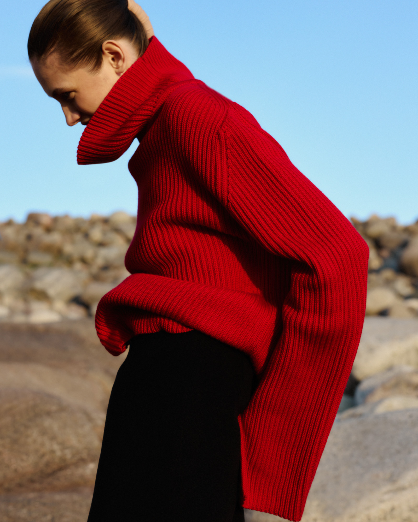 Пальто-халат из смесовой шерсти ручной работы станет достойной альтернативой легендарному бежевому пальто Max Mara, а вязаное платье-миди с молнией на вороте – универсальным вариантом для офисных будней и неформальных выходов в прохладную погоду. Среди других ключевых моделей – джемперы и брюки из вязаного трикотажа, которые уверенно выступают как сольно, так и в составе многослойных образов.