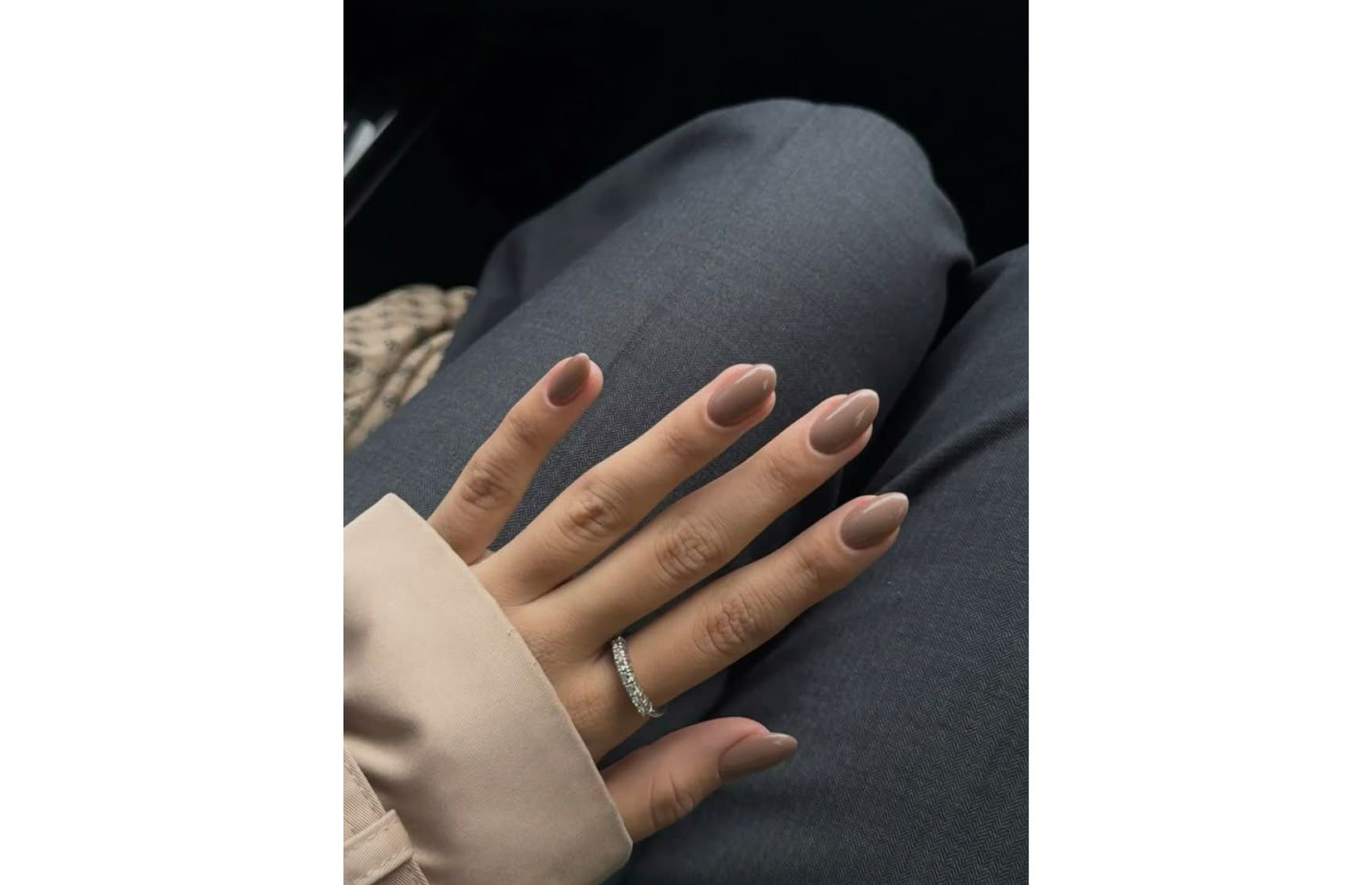 Тауп перестает быть фоновым цветом: теплый серо-бежевый с коричневым подтоном подчеркивает форму ногтей и вписывается в любой образ.