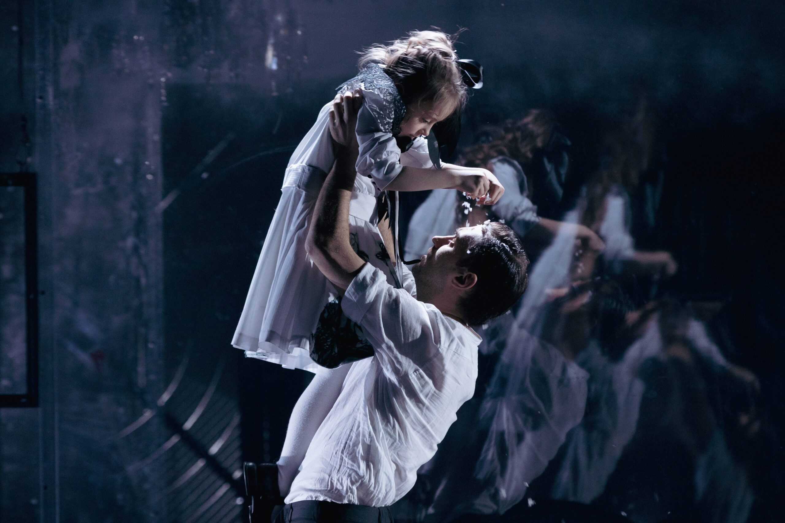 «Вы не видели маленькую девочку?» — спрашивает у пассажиров поезда Анна (Анастасия Уколова), пробегая вдоль вагона. Точнее — не она, а диббук, ее неприкаянная душа. Этот вопрос, как рана, из которой не прекращает течь кровь, будет зиять в душе Карениной постоянно, пока вдруг она эту девочку не встретит. Точнее — свою смерть. Та появится на сцене несколько раз — в белом платьице и с железной рельсой вместо косы и молотком в руках. Удар по рельсе молотком — отпевание Анной самой себя.