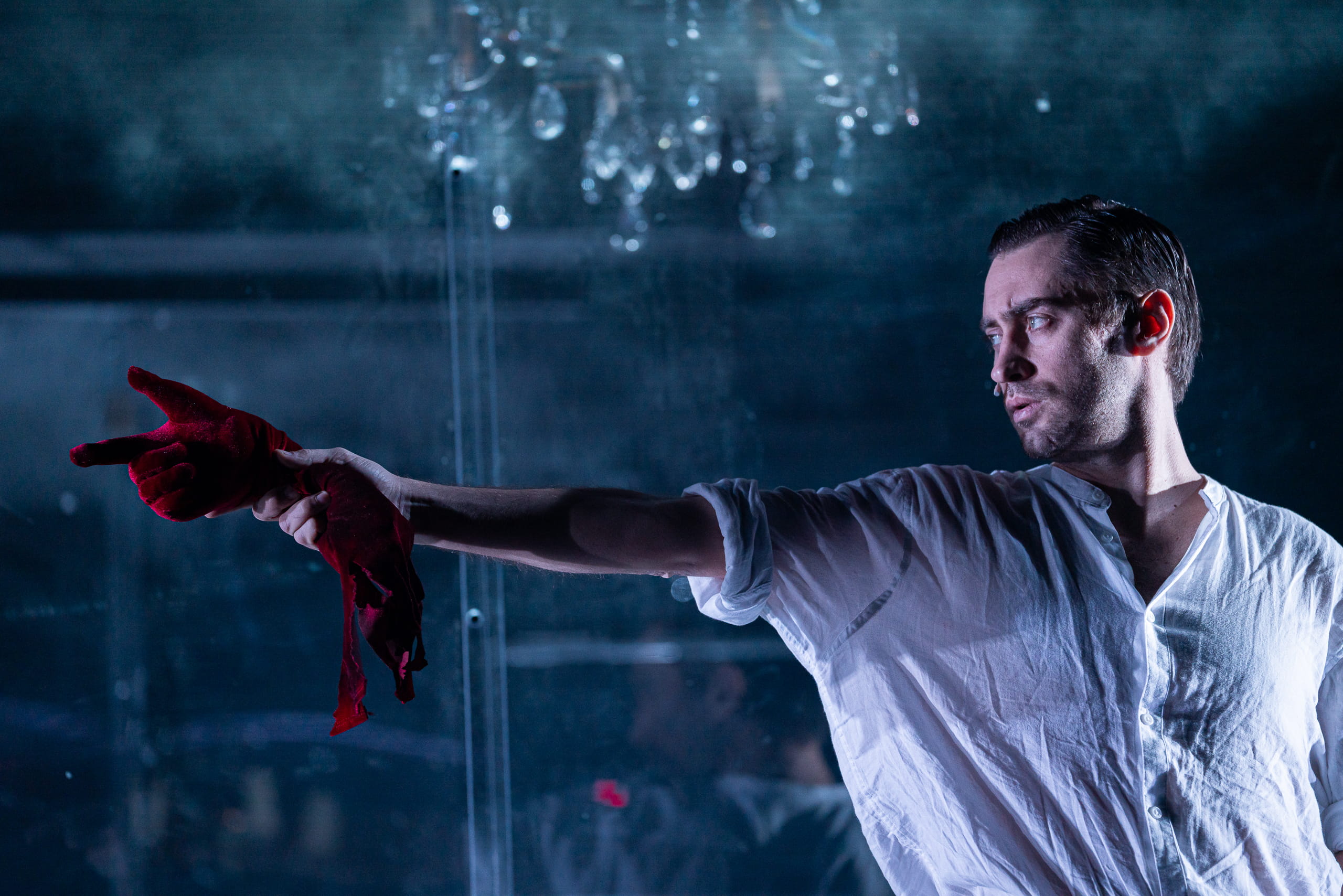 В книге это описано так: «…несмотря на весь ужас убийцы пред телом убитого, надо резать на куски, прятать это тело, надо пользоваться тем, что убийца приобрел убийством». Слов этих в спектакле Чащина нет, но убийство главной героини совершается с первых же мгновений.