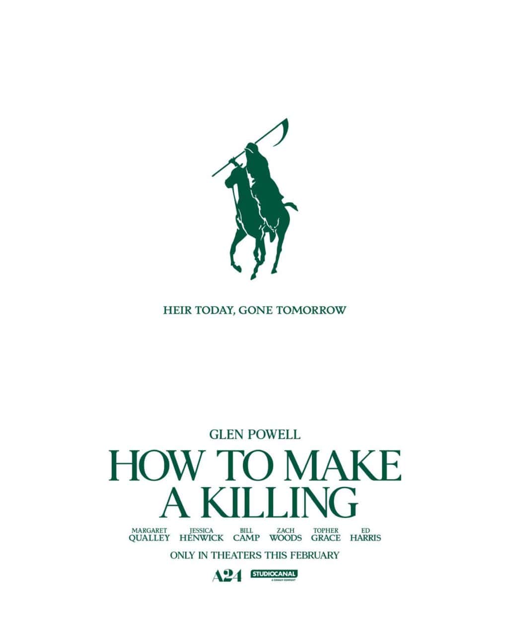 Глен Пауэлл и Маргарет Куолли в фильме о парне по имени Бекет, который живет в бедности. Он решает убить своих алчных родственников, чтобы к нему по наследству перешло все их состояние — 28 млрд долларов. В России лента выйдет в следующем году.