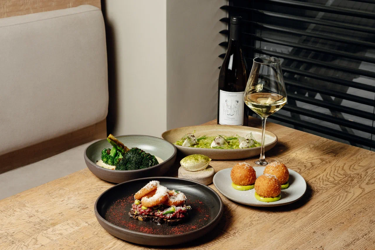 В Mates делают ставку на авторскую миксологию, zero ABV и неочевидные сочетания вина с джанк-фудом. В коктейльной карте — спритц с яблоком, фейхоа и огурцом, ягодный Mates Garden и безалкогольный Negroni Filter. Вино предлагают подбирать под пиццу — от Pinot Noir до минеральных белых с Канарских островов. Возрастное ограничение: 18+.