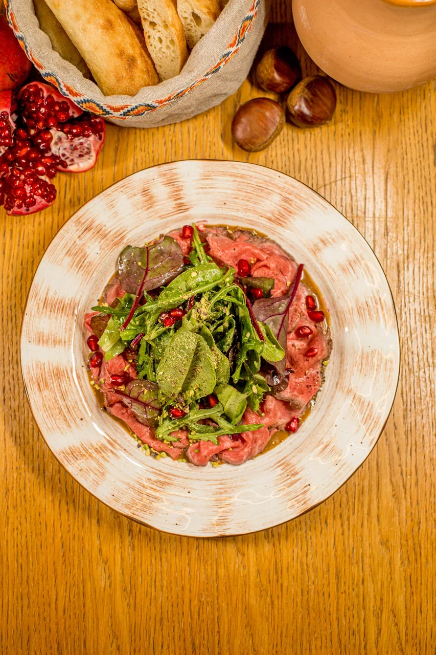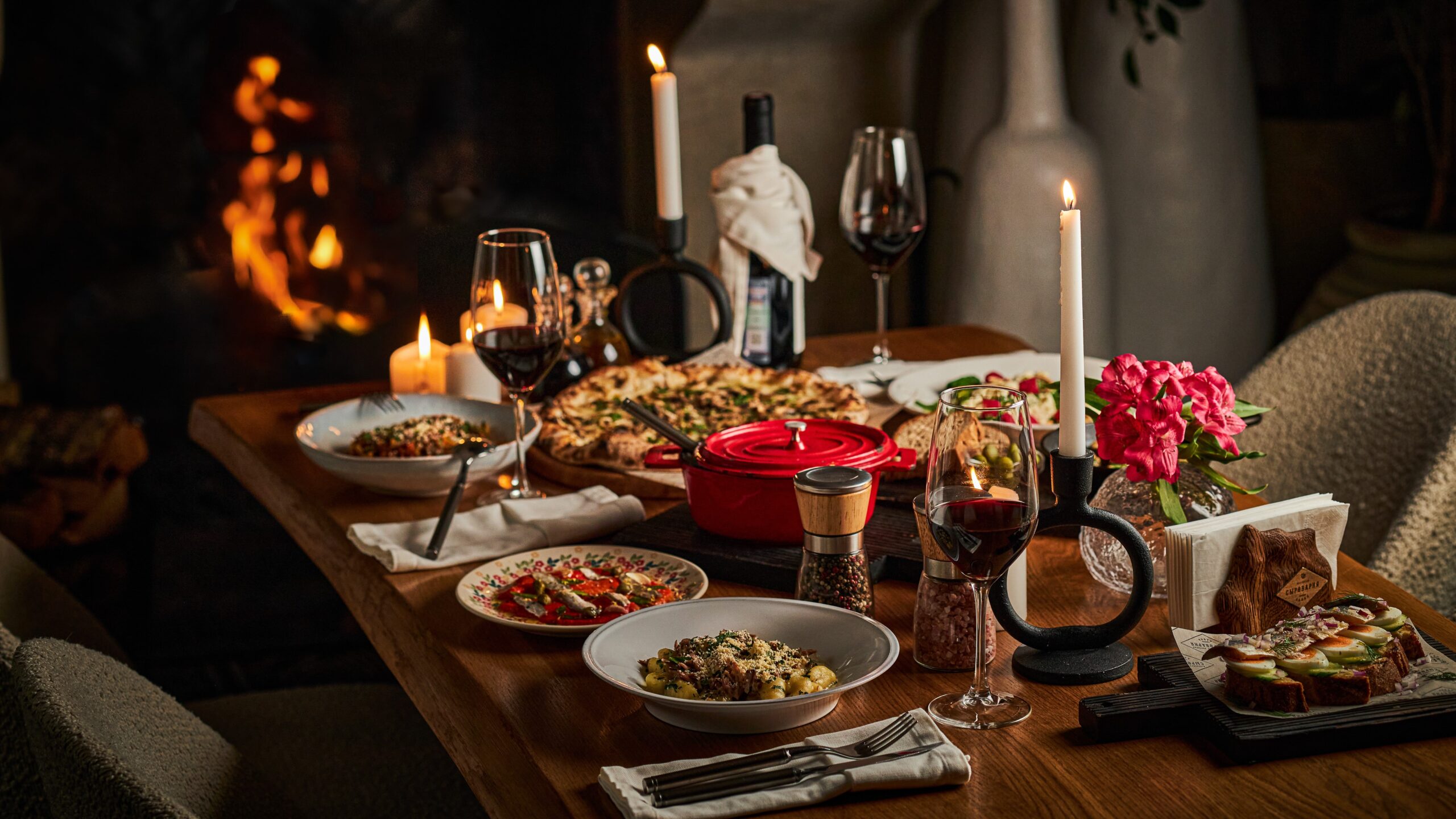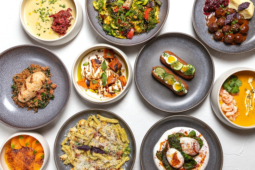 Вот полный список: брускетта с сельдью и яйцом, печеный перец с килькой, салат с рикоттой и малиной, салат с халуми и гранатом, сырный суп с беконом и брокколи, ньокки с томленой уткой, гречневая каша с уткой и зеленым луком, спагетти с томленым ягненком, пицца с грибами и трюфельным маслом и шампиньоны с чесноком и петрушкой. Спешл доступен с 1 по 10 декабря.