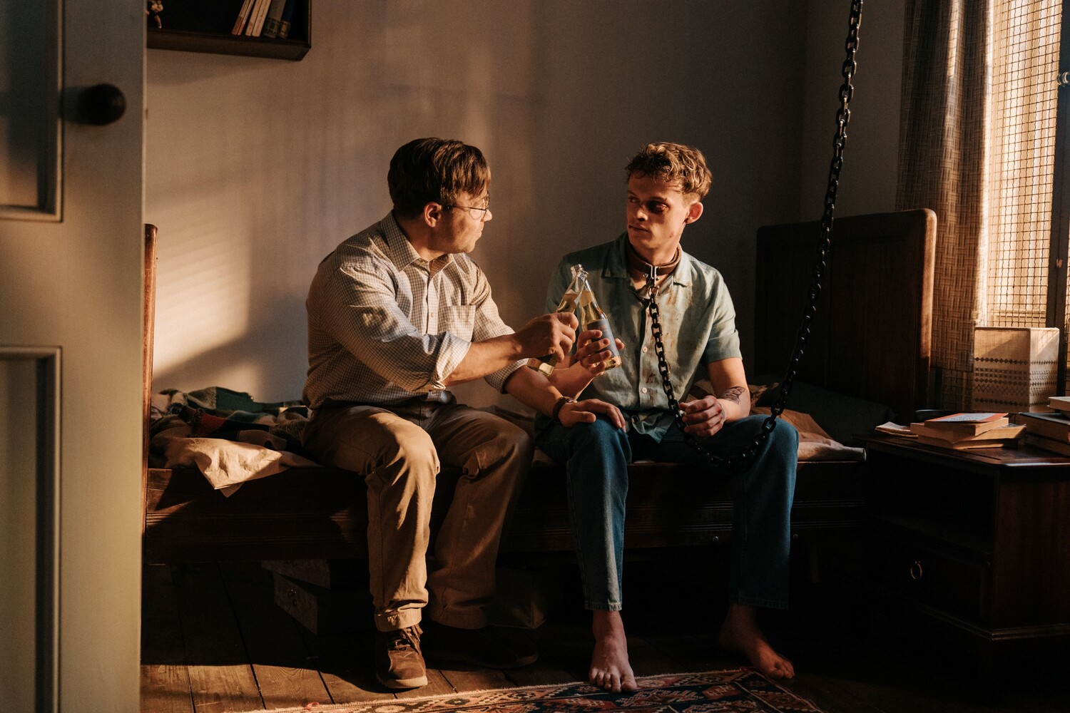 Новая работа польского режиссера Яна Комаса («Тело Христово») заводит неожиданный диалог с британской классикой — фильмами направления реализма кухонной раковины и «Заводным апельсином». В центре истории — 19-летний англичанин, который стал жертвой похищения из-за того, что вел нетрезвый образ жизни и пранковал людей на камеру. После очередного загула парня «приютила» у себя одна семья, приковав его на цепь в подвале.