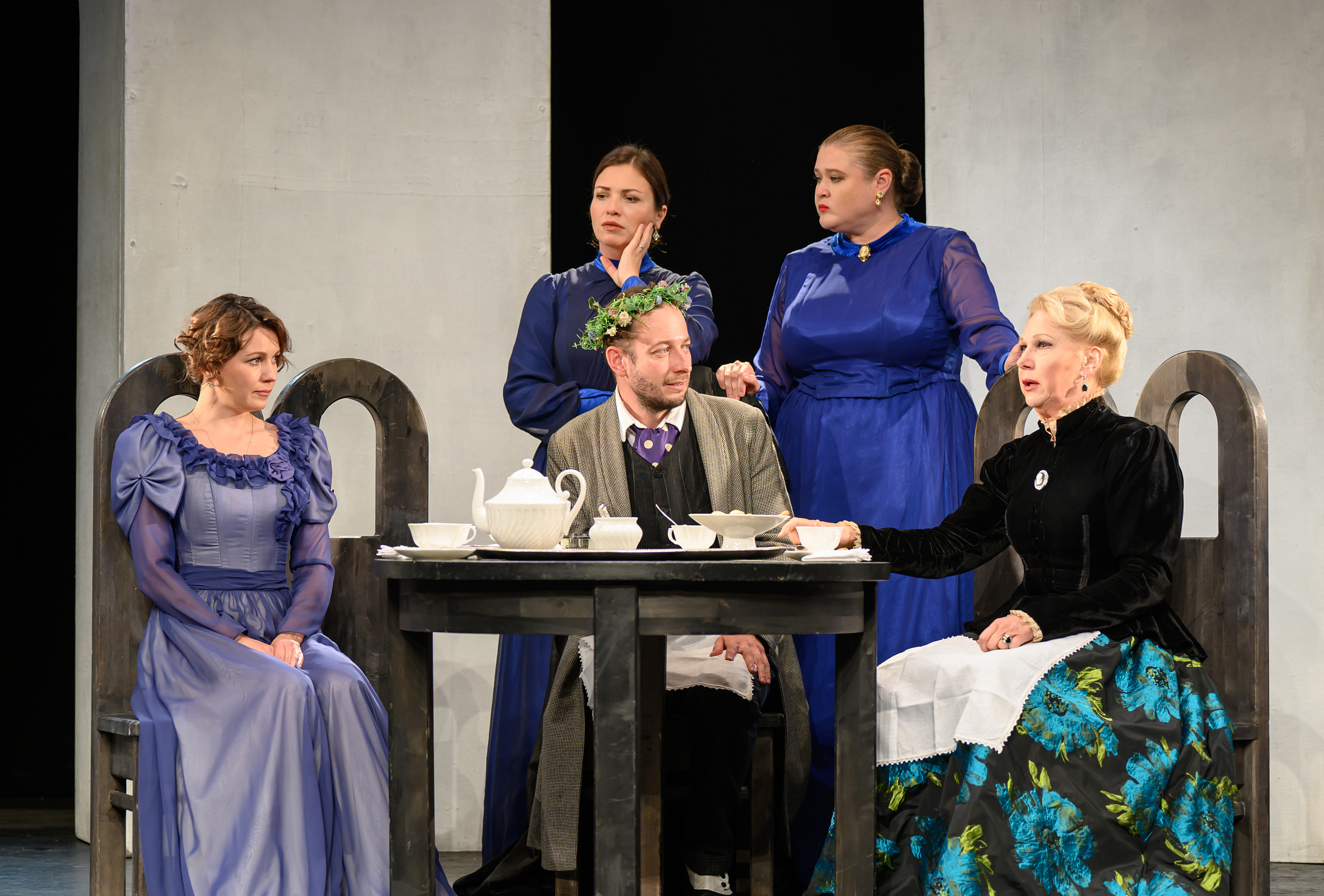 Спектакль по мотивам повести Гоголя погрузит зрителя в зловещую атмосферу. В декорациях — детали народного быта: полутьма зала и резкие вспышки света рождают ощущение неустойчивости, мистики. Народные напевы переплетаются с фолк-панком, а сам Вий предстает толпой актеров, которые за несколько секунд перевоплощаются из веселого хора в шествие нечисти.