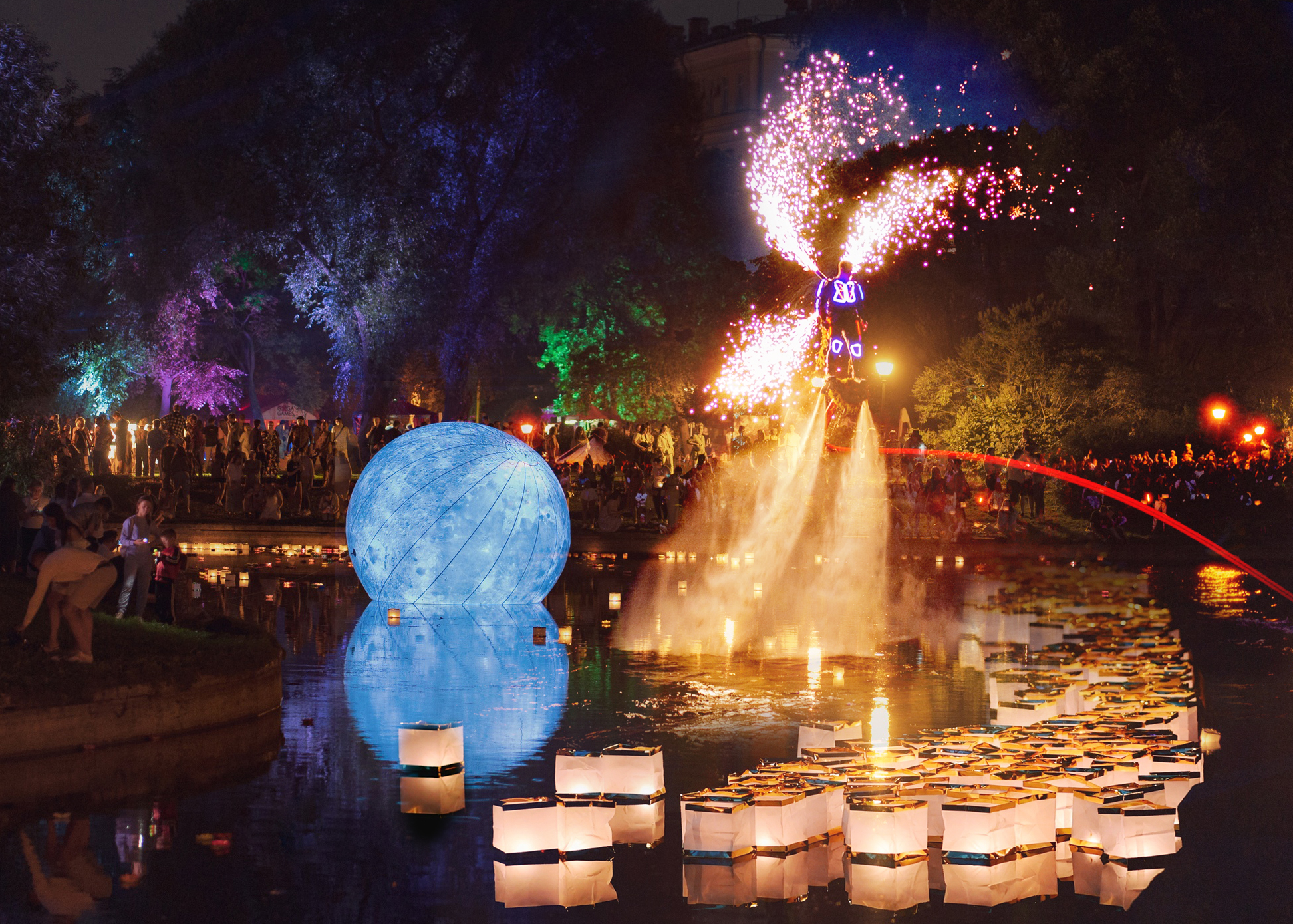 На главной сцене фестиваля гостей ждут рок-хиты в симфонической аранжировке. Вечер продолжит огненно-пиротехническое шоу — в Юсуповском саду коллектив «Крэсива» выступит с огнеметами под музыку на стихи Бродского и Цветаевой. Но это не все. Дополнительно подготовлена насыщенная программа: космическая площадка с телескопами, зазеркалье Алисы в Стране чудес, мастер-классы, ярмарка ремесленников и запуск фонариков желаний.