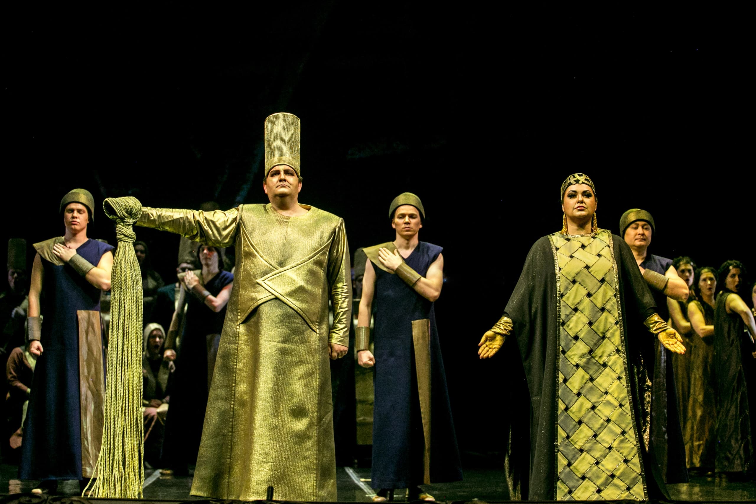 Действие музыкальной драмы разворачивается во времена правления фараонов и рассказывает о трагической любви начальника дворцовой стражи Радамеса и рабыни Аиды, дочери эфиопского царя Амонасро. Спектакль поставлен на итальянском языке под музыку Джузеппе Верди.