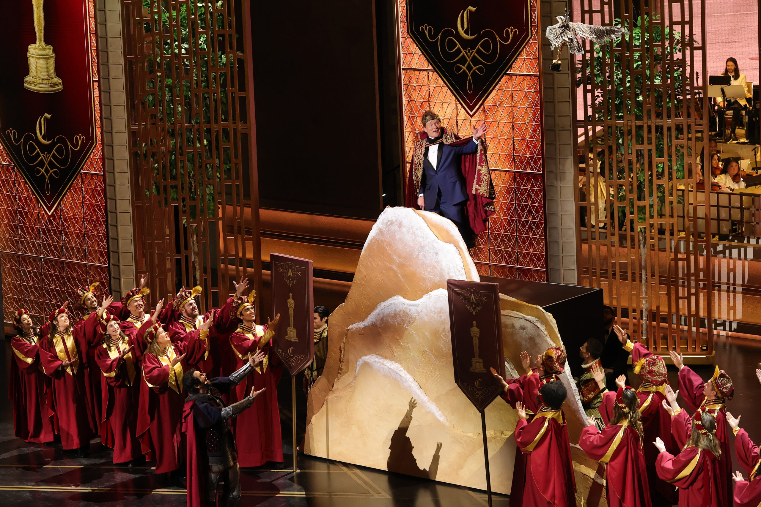 Больше всего на церемонии досталось Тимоти Шаламе. Вступительная речь ведущего началась с шутки в его адрес. О’Брайен подколол актера за неудачное высказывание об опере и балете. Хохмы на эту тему просачивались в трансляции еще не раз. Отдельно режиссеры посмеялись над эпизодом из «Марти Великолепного», в котором героя Шаламе хлещут по заднице: среди инструментов в оскаровском оркестре внезапно появилась играющая пятая точка Тимоти. А в завершении вечера над актером посмеялась уже судьба — он не только в очередной раз проиграл в номинации «Лучшая мужская роль», но и проводил взглядом за кулисы Майкла Б. Джордана под песню The Winner Takes It All.