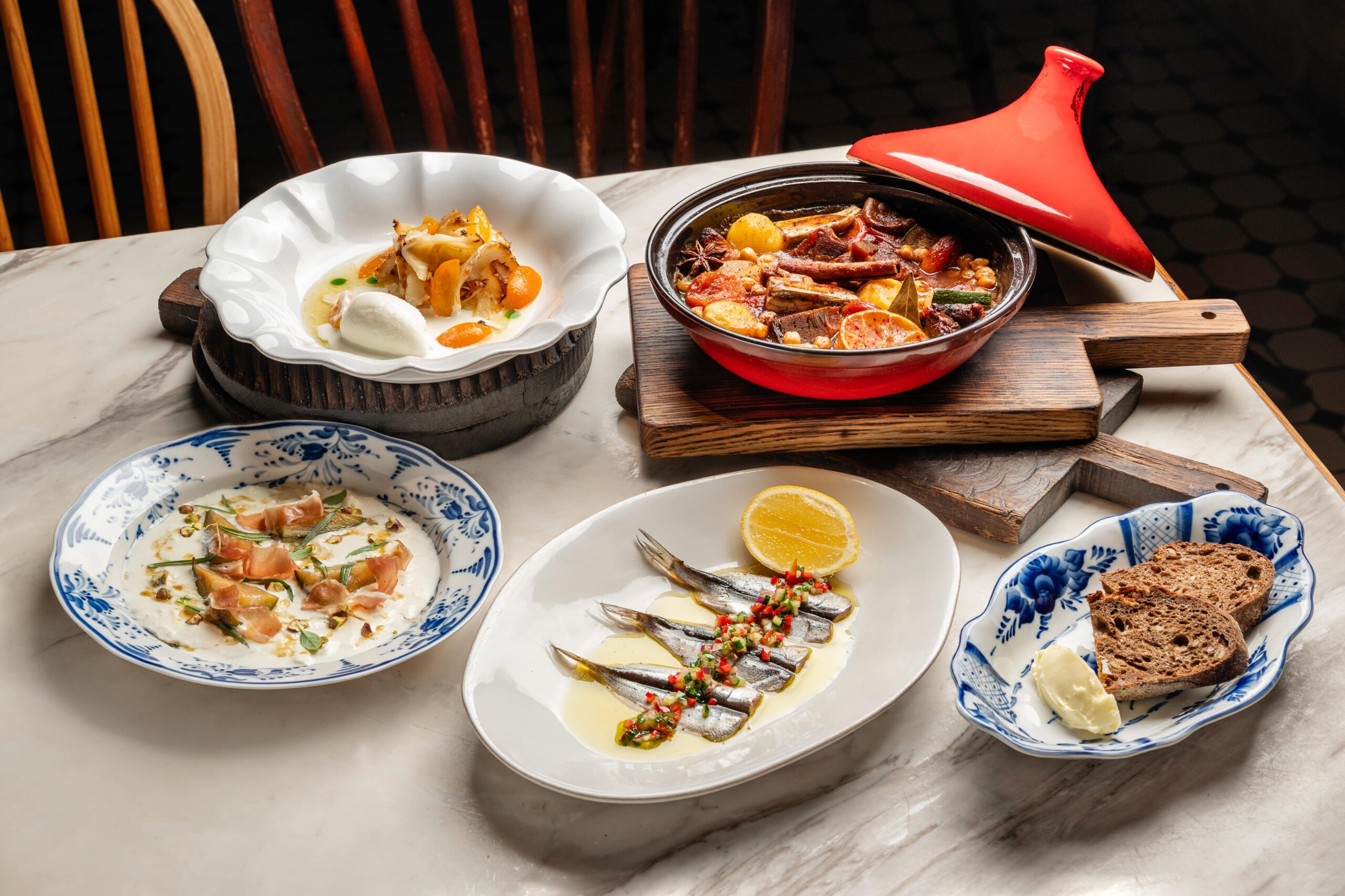 «Углубляемся в сезонные продукты и диковинки со всего мира. Фейхоа и сардины — редкость для города, нечто новое и малоизведанное. Таджин — томленый пряный ягненок в сказочной и традиционной для Алжира посуде. Овощной десерт из корня сельдерея — локальная история», — шеф-повар Родион Андрианов.