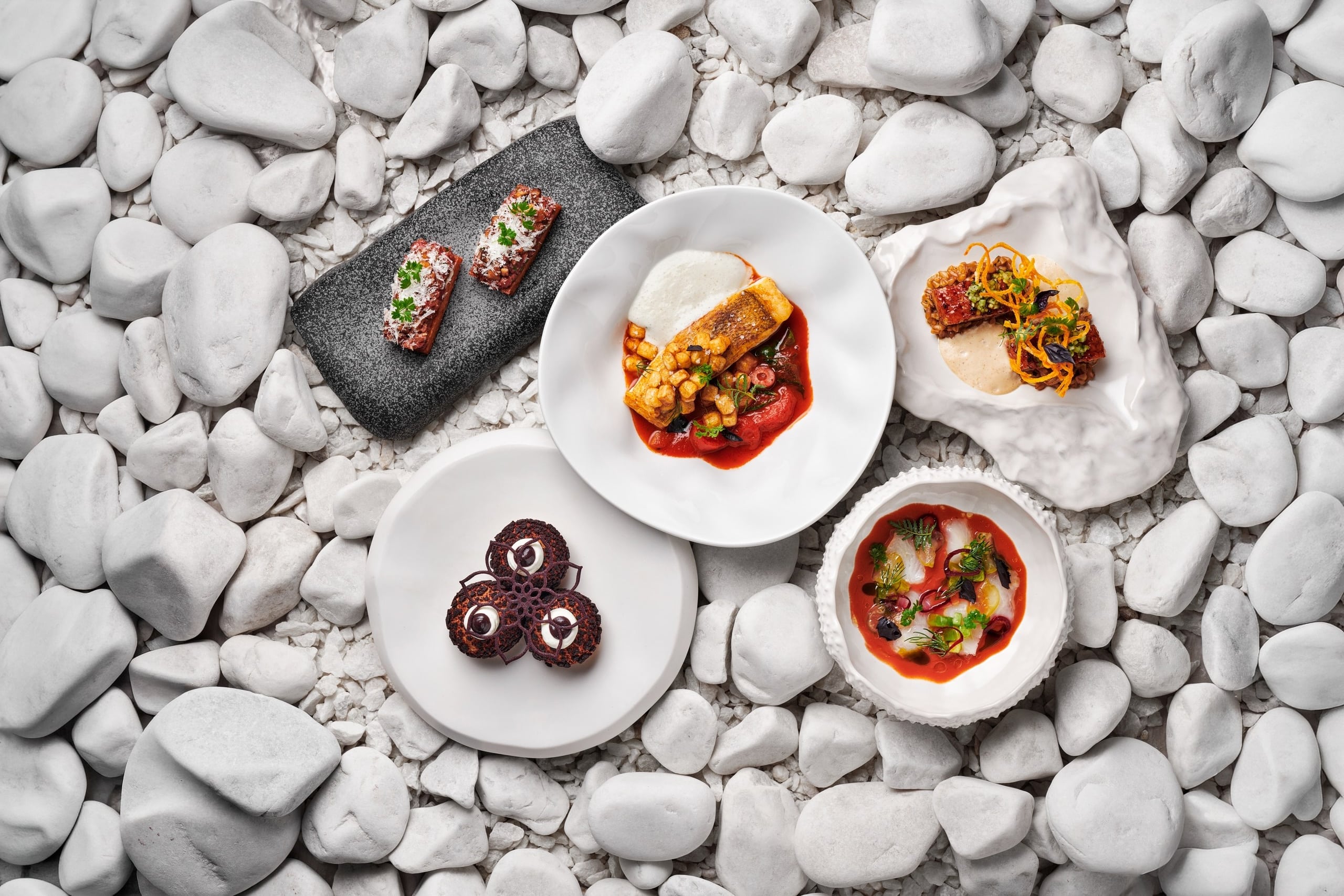 «Сет продолжает историю главного морского ресторана города. Среди морепродуктов — рапаны, устрица, осьминог и креветка. Их окружение — ностальгические воспоминания о сборе грибов в детстве, летних плодах черешни и щедром десерте только для себя», — шеф-повар Рустам Гимадутдинов.