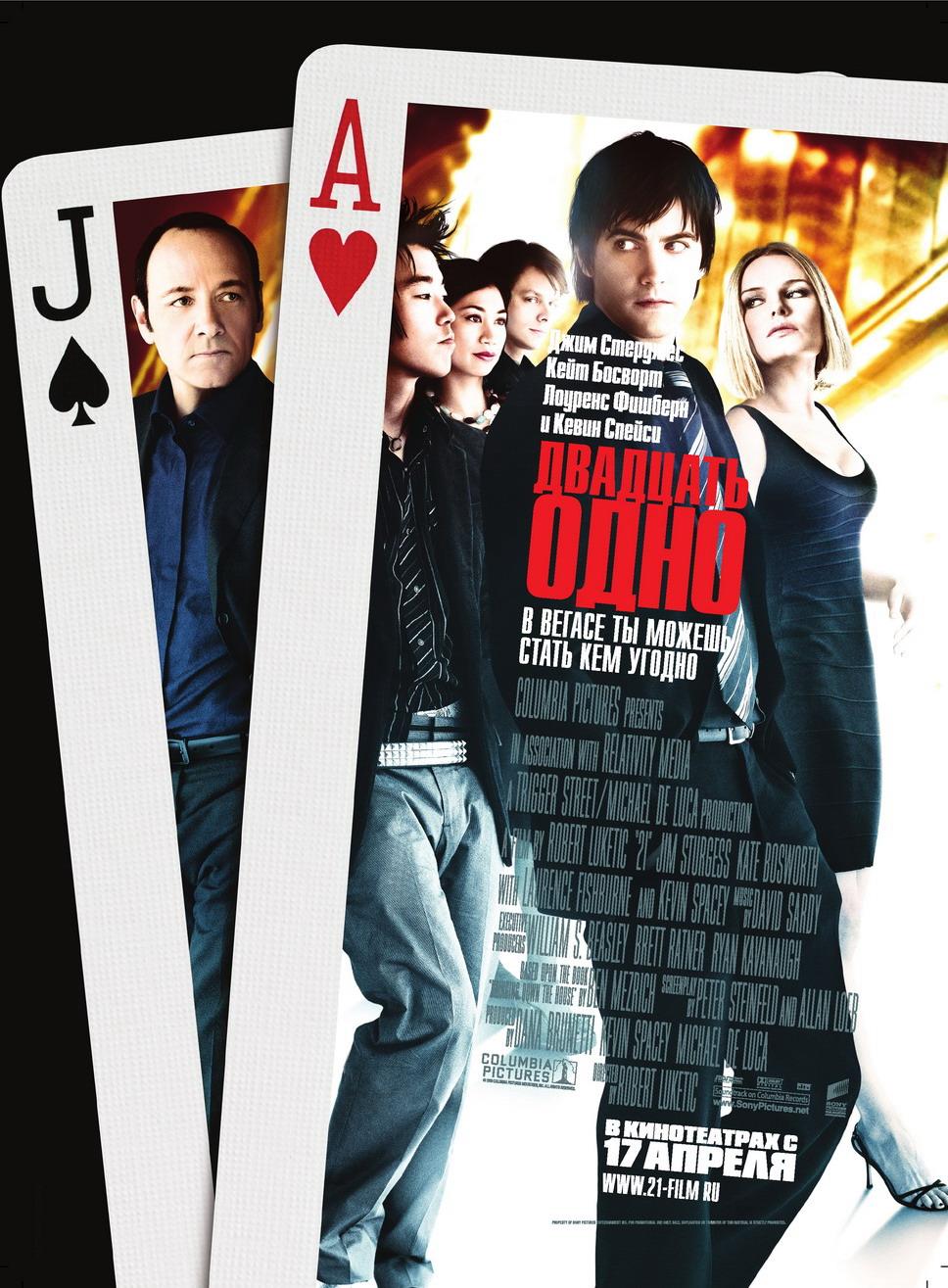 Там фифа с Беверли-Хиллз восходила к высотам юридической науки в Гарварде, тут заучившийся студент-медик, тоже из Гарварда, сворачивает с тернистого пути учения, саботирует подготовку к конкурсу на самую ловкую модель робота и спускается в неоновую геенну — в Лас-Вегас, к блек-джеку и шлюхам. И все это почти чистая правда: сюжет «21» основывается на известной в Америке истории картежника Джеффа Ма (она изложена в бестселлере «Срывая банк»), освоившего технику интеллектуальной игры в «очко».