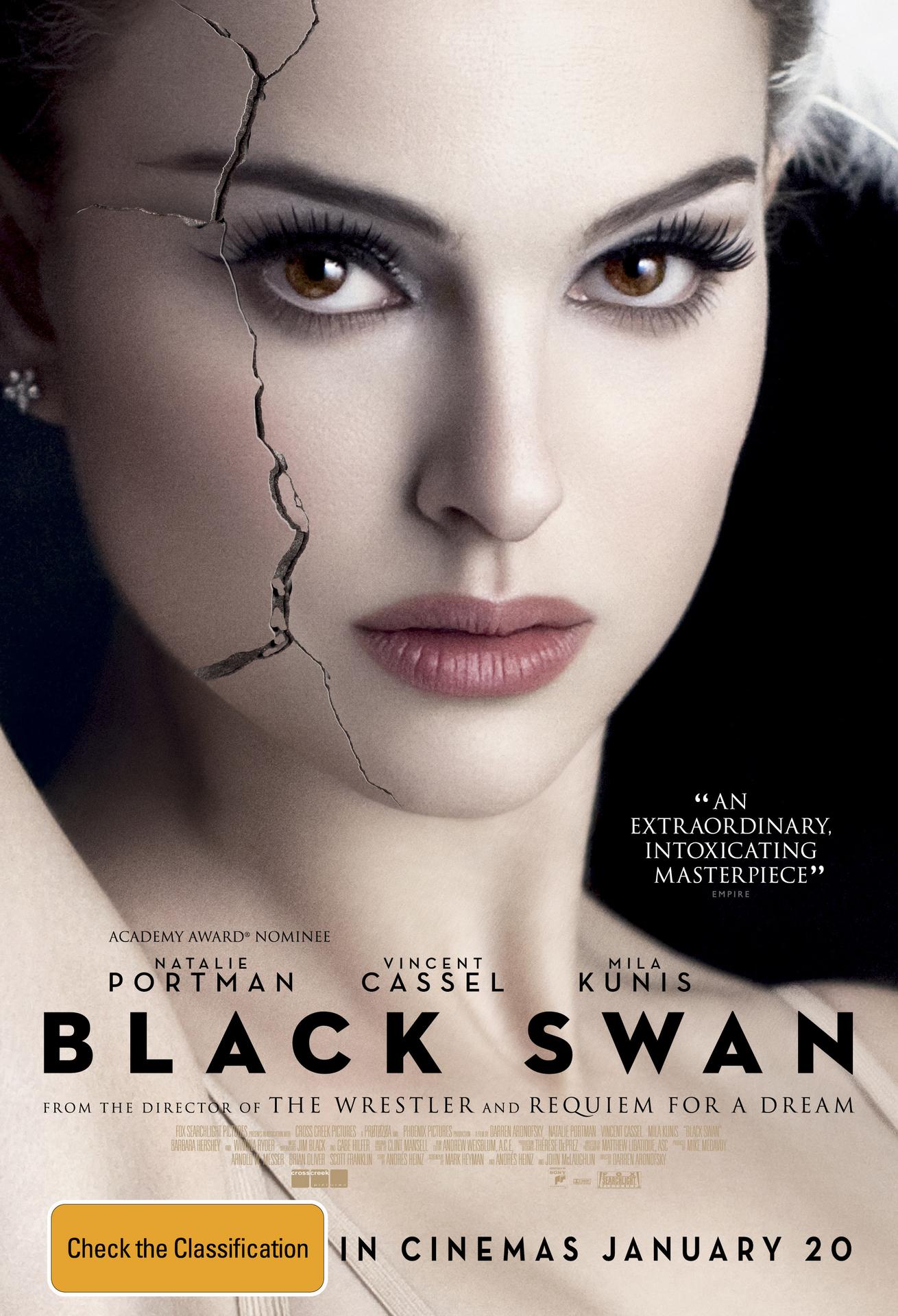 Передовой нью-йоркский балет готовит новаторскую постановку «Лебединого озера». Приглашенный хореограф, карикатурный француз Тома (Кассель), задумал эксперимент: две главные партии — прекрасного Белого лебедя и ужасного Черного — должна исполнить одна и та же балерина. В поисках солистки Тома присматривается к молодой и, безусловно, одаренной Нине (Портман) — но не находит в ней столь необходимого для Черного лебедя сексуального огня. Что и неудивительно: Нина растет под присмотром деспотичной матери и до сих пор окружена детскими рисунками и розовыми плюшевыми медвежатами — какая уж тут страсть. Но когда Тома пытается переключить внимание на сексапильную дублершу (Мила Кунис), Нина быстро дает понять, что без боя не сдастся. Укусив носатого балетмейстера, пытавшегося в педагогических целях ее соблазнить, девушка усиленно принимается репетировать страсть в свободное от работы время: с помощью мастурбации, экстези, вечеринок и все той же стервозной дублерши. Своего она, конечно, добивается, но плата за триумф оказывается, пожалуй, чрезмерной: мало того что помутненное сознание балерины начинает давать сбои, так еще и на расцарапанной девичьей спине все сильнее прорезаются черные крылья.