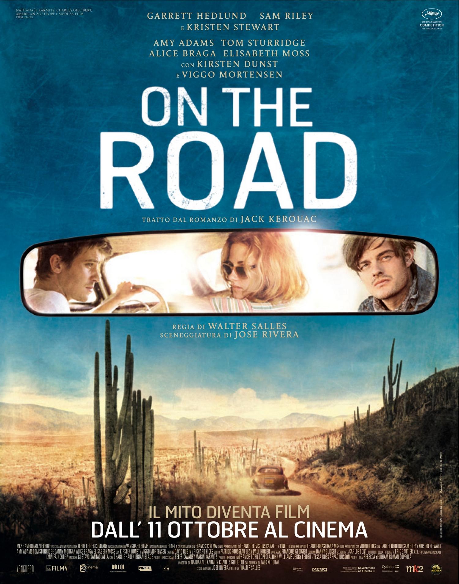 Долгая дорога в ночь. Трясется по плохой грунтовке грузовик, в кузове — десяток обветренных странников. По кругу ходит дешевый вискарь, кто-то запевает песню, а Сэл Пэрадайз (Сэм Райли), самый интеллигентный юноша в этой мутной компании, картинно вглядывается в колорадскую даль. Сэл едет в Денвер — а потом в Калифорнию, впервые пересекая страну с востока на запад. Жизнь начинающего нью-йоркского писателя на дороге началась за несколько месяцев до того — со смерти отца и знакомства Сэла и его нью-йоркских друзей-интеллектуалов с юным выпускником колонии для несовершеннолетних Дином Мориарти (Гаррет Хедлунд) и его молодой женой Мэрилу (Кристен Стюарт).