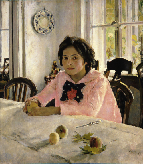 «Девочка» была написана в Абрамцево — имении Мамонтовых, друзей Серова. Художник вообще любил гостить у знакомых и часто оставался в их поместьях на многие месяцы. Во время долгой работы над этим портретом автор говорил: «В нынешнем веке пишут все тяжелое, ничего отрадного. Я хочу, хочу отрадного, и буду писать только отрадное». Радость и свежесть действительно так и брызжут с полотна, но в реальности героиня работы умерла от пневмонии в 32 года — и это можно считать символом несчастливой судьбы многих клиентов Серова, которые после революции или эмигрировали, или остались в новой России и жили в нищете.