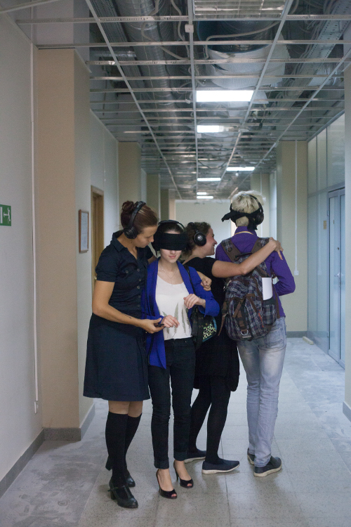 Три перформативных проекта, которые не требовали долгих и муторных согласований и поэтому уже осуществлены. Елена Холкина во дворе дома-кольца вывесила сушиться простыни с суждениями жителей об этом уникальном сооружении и таким образом наладила между ними диалог. Александра Портянникова вклинилась с танцевальными перформансами в оживленные потоки пешеходов и задокументировала реакцию людей. А Supramen сделали серию экскурсий по Москве с завязанными глазами — путешествуя таким образом, проще обратить внимание на невизуальные ощущения и по-новому почувствовать привычные места в городе.