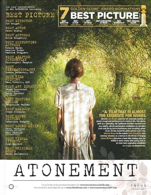 Вся троица непрестанно стучит на своих «ундервудах»: старшая, Сесилия (Кира Найтли), строчит первый роман, младшая, 12-летняя Бриони, — первую пьесу, а Робби — любовные признания. Вместо того чтобы их и отправить старшей сестре, он ненароком засовывает в конверт нежные скабрезности, которые попадают в руки младшей. Днем позже та натыкается в кустах на изнасилованную кузину (она приехала в деревню погостить). Когда в поместье наведывается констебль, девочка уверенно показывает пальчиком на Робби. Из тюрьмы Робби мобилизуют и отправляют во Францию, на фронт. Тут повествование расползается, а сквозь сюжетные лакуны вырисовывается история Бриони, которая вместо Кембриджа пошла в фельдшеры, надеясь наткнуться в лондонском госпитале на Робби.