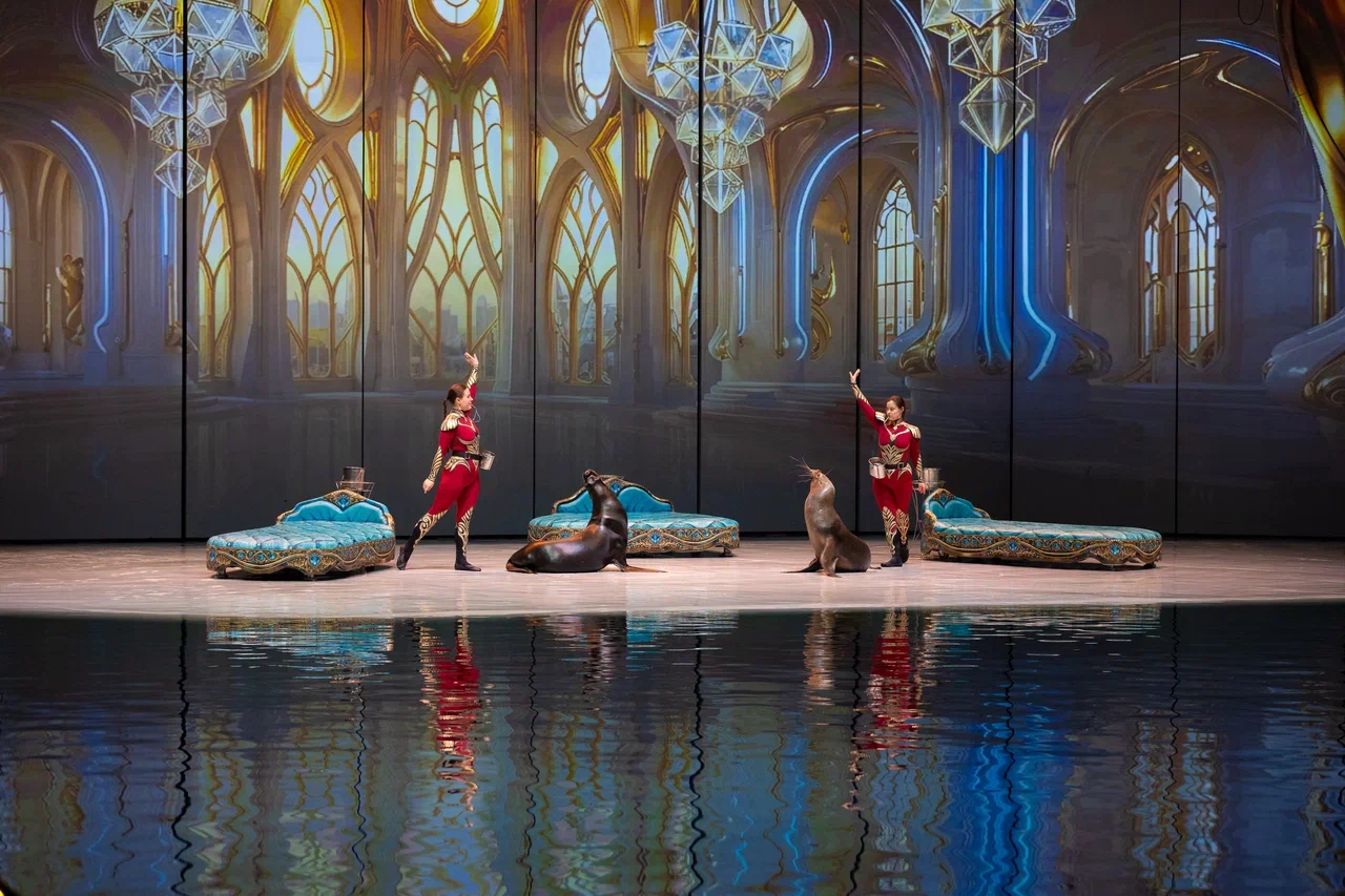 Действие разворачивается не только перед глазами — оно окружает людей со всех сторон и переносит зрителей в разные уголки земного и морского миров: от сияющих коралловых рифов до таинственных глубин океана.
