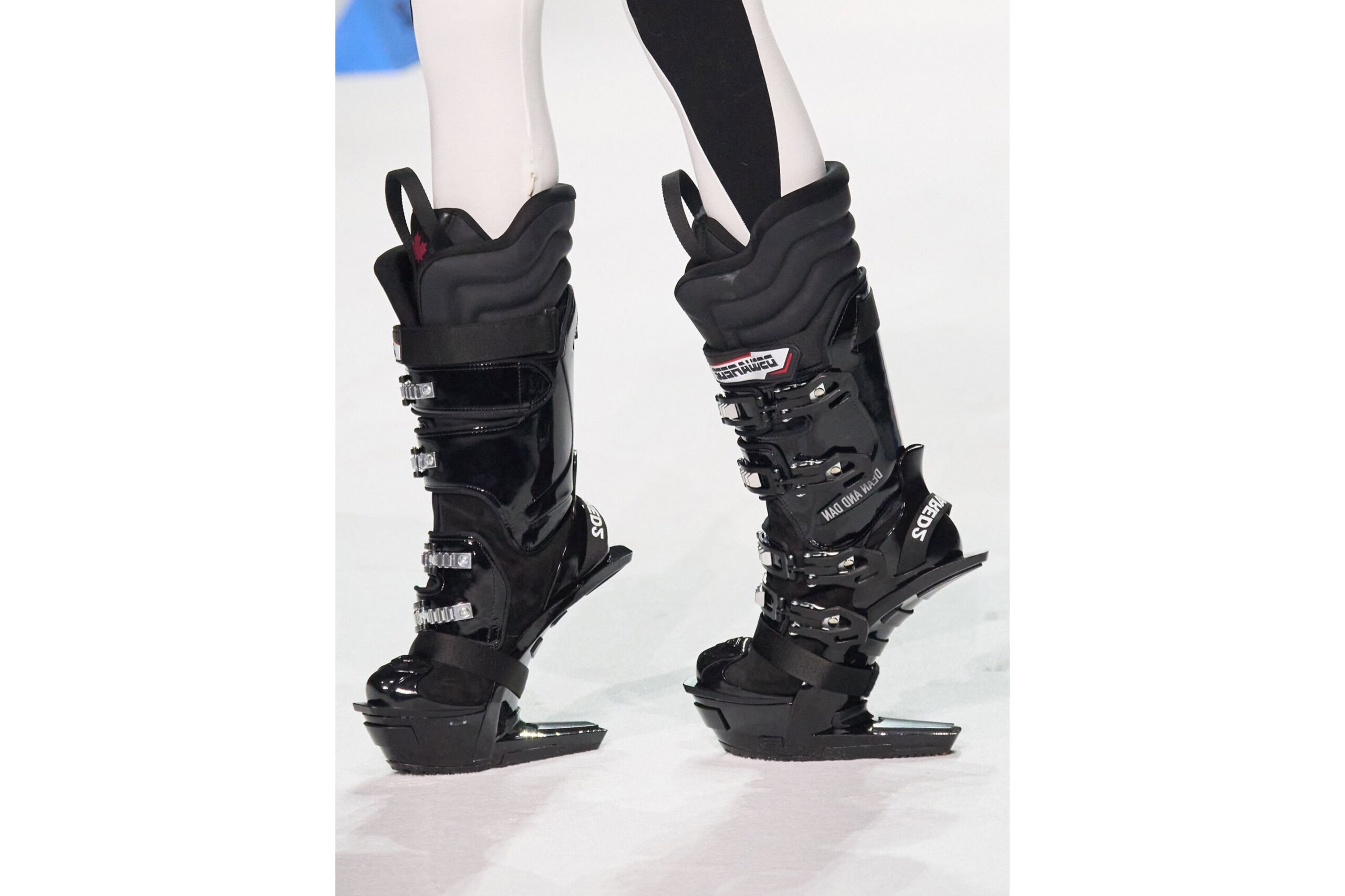Дин и Дэн Кейтен, основатели Dsquared2, вдохновившись зимними видами спорта, выпустили ботинки, напоминающие хоккейные коньки.