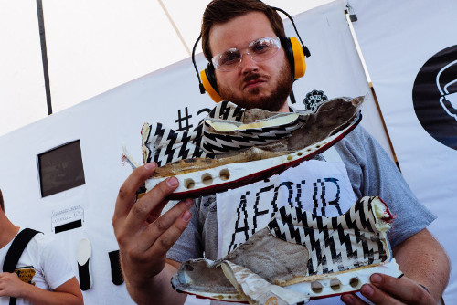 6. Хорошо известная площадка Puma Social Club презентует на выставке сникер-драм инсталляцию Pumа. На протяжении двух дней у гостей площадки будет возможность создать свой уникальный музыкальный ролик, сыграв на барабанной установке в виде кроссовок Puma Trinomic R698. При нажатии на «R698-барабаны» звучит определенная музыкальная композиция, а на экране возникает видеоряд из работ российских стрит-фотографов и художников. Все ролики будут разными — инструмент так запрограммирован, — и ими можно будет делиться в своих соцсетях.