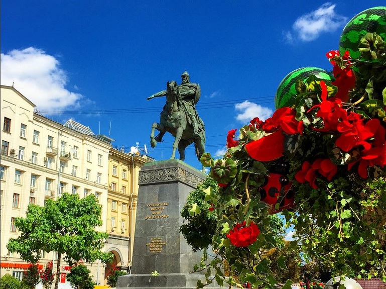 Памятник Долгорукому тоже украсили в «арбузной» стилистике: