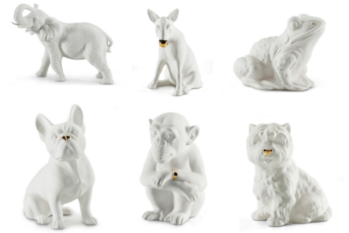 Духи, кстати, можно наносить не только на кожу, но и на фирменные белые керамические статуэтки животных с золотыми элементами — они выступают в качестве декоративных ароматизаторов помещений.