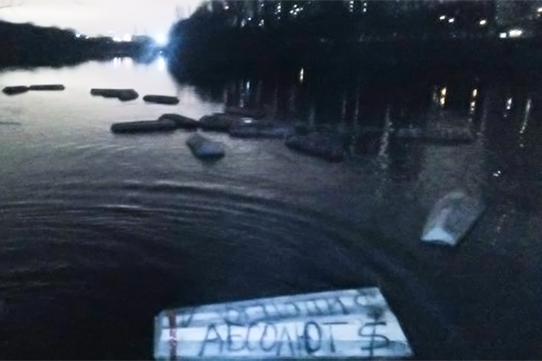 В Москву-реку спустили 20 гробов с названиями банков, которыми взявшие ипотеку особенно недовольны. Гробы отчалили от Карамышевской набережной в 05.30 утра.