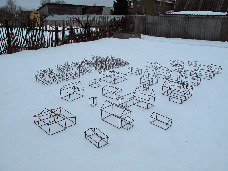 «Центр экспозиции – инсталляция “Ландшафт”, деревенский пейзаж, сваренный из ржавых металлических прутьев. Тут есть несколько десятков домов и рядом с ними кладбище. Это этюд с натуры – я отталкивалась от своего окружения.