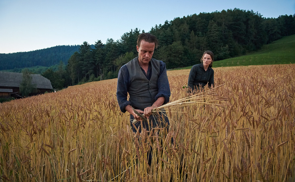 Австрийский Радегунд — деревушка-крохотка. Люди здесь живут, как у Христа за пазухой: вокруг горы да поля, в полях — травы по пояс, птицы гимны солнцу поют, цветы разноцветными головами кивают. Благодать, в общем. На дворе, однако, 1939 год, поэтому благодать внезапно тускнеет: молодых мужчин Радегунда призывают в армию защищать Третий Рейх. Среди новобранцев оказывается и Франц Егерштеттер (Аугуст Диль), который, потыкав штыком в соломенный манекен, понимает, что тыкать железом в людей он точно не будет. К счастью, Франца с однополчанами немцы отправляют домой: фюрер решил, что кормящие фермеры ему нужнее очередной порции пушечного мяса. А в 1943 году Егерштеттера призывают снова — и он послушно едет в комендатуру, зная, что откажется присягать Гитлеру, и поэтому, скорее всего, будет убит.