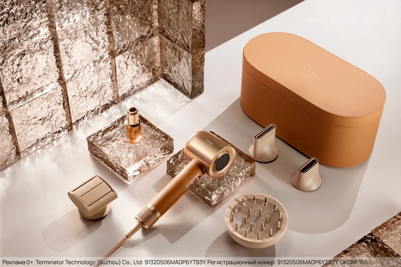 Фен Dreame Miracle Pro оснащен системой мелкодисперсного распыления, которая равномерно распределяет уходовую эссенцию по волосам. Двухволновой красный свет используется для стимуляции кожи головы, а температура и скорость воздушного потока регулируются автоматически с помощью встроенных датчиков. Мотор со скоростью вращения 130 000 об/мин обеспечивает быструю сушку, информация о режиме работы отображается на LED-дисплее. Премиальный дизайн: корпус с золотистым гальваническим покрытием и удобная ручка, обтянутая кожей.