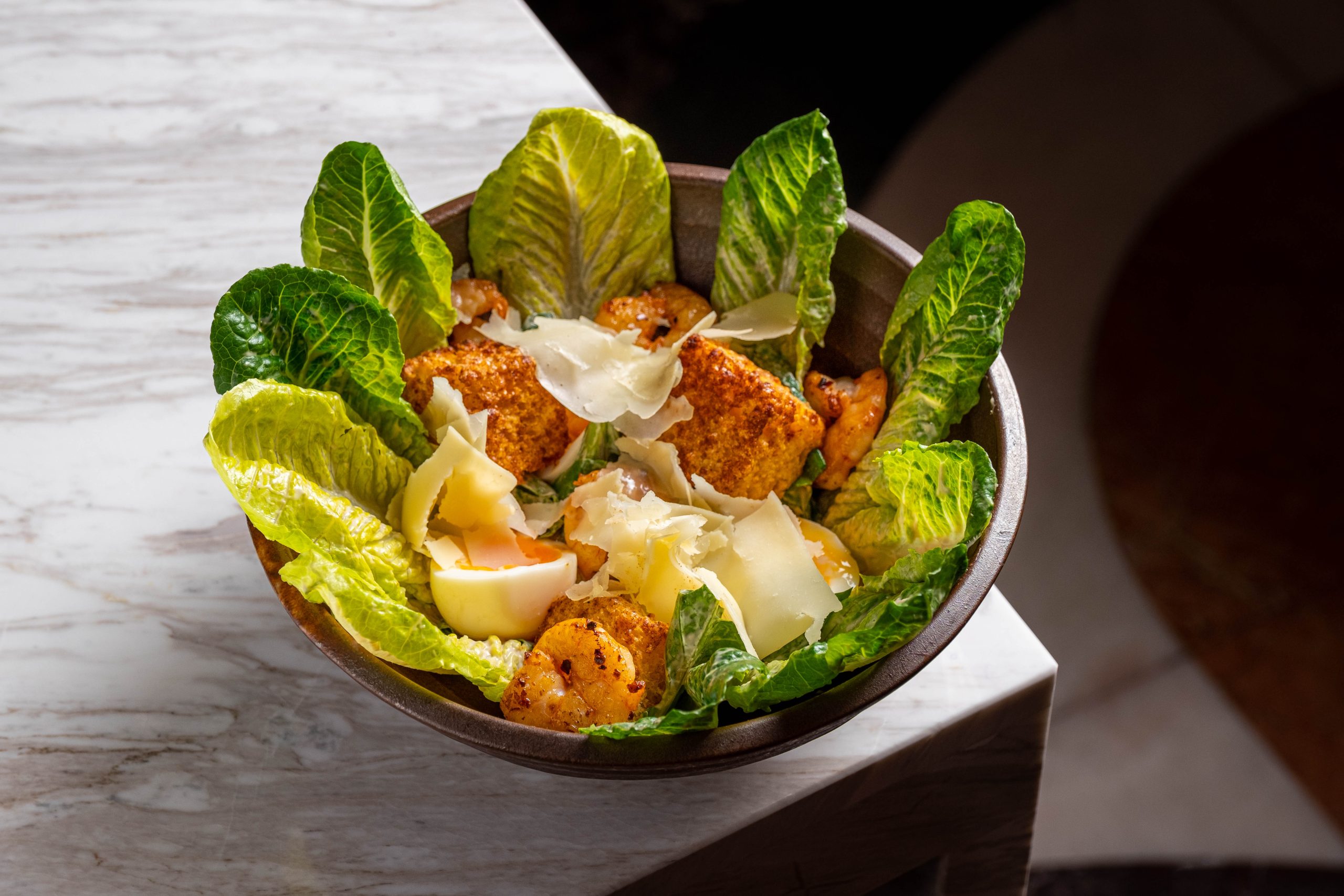 Цезарь Кардини сконструировал свой салат, что называется, «из того, что было». В обмазанную чесноком тарелку он выложил жареный хлеб и романо, заправил все это смесью масла, яичных желтков, лимонного сока и вустерского соуса, а в конце припорошил пармезаном. И только в 70-е годы, уже благодаря дочери шефа, выяснилось, что у истоков рецепта стояли исключительно целые листья романо — предполагалось, что «Цезарь» нужно есть руками. К оригинальному рецепту решил вернуться Джеймс Редута из «Море кофе океан by Erwin». Дополнив «Цезарь» жареными креветками и яйцом-пашот, он отправил в тарелку именно целиковые листья романо. В определенном смысле это вызов и даже прямое руководство к действию: на время забыть о вилке с ножом и попытаться съесть салат так, как и задумывалось изначально.