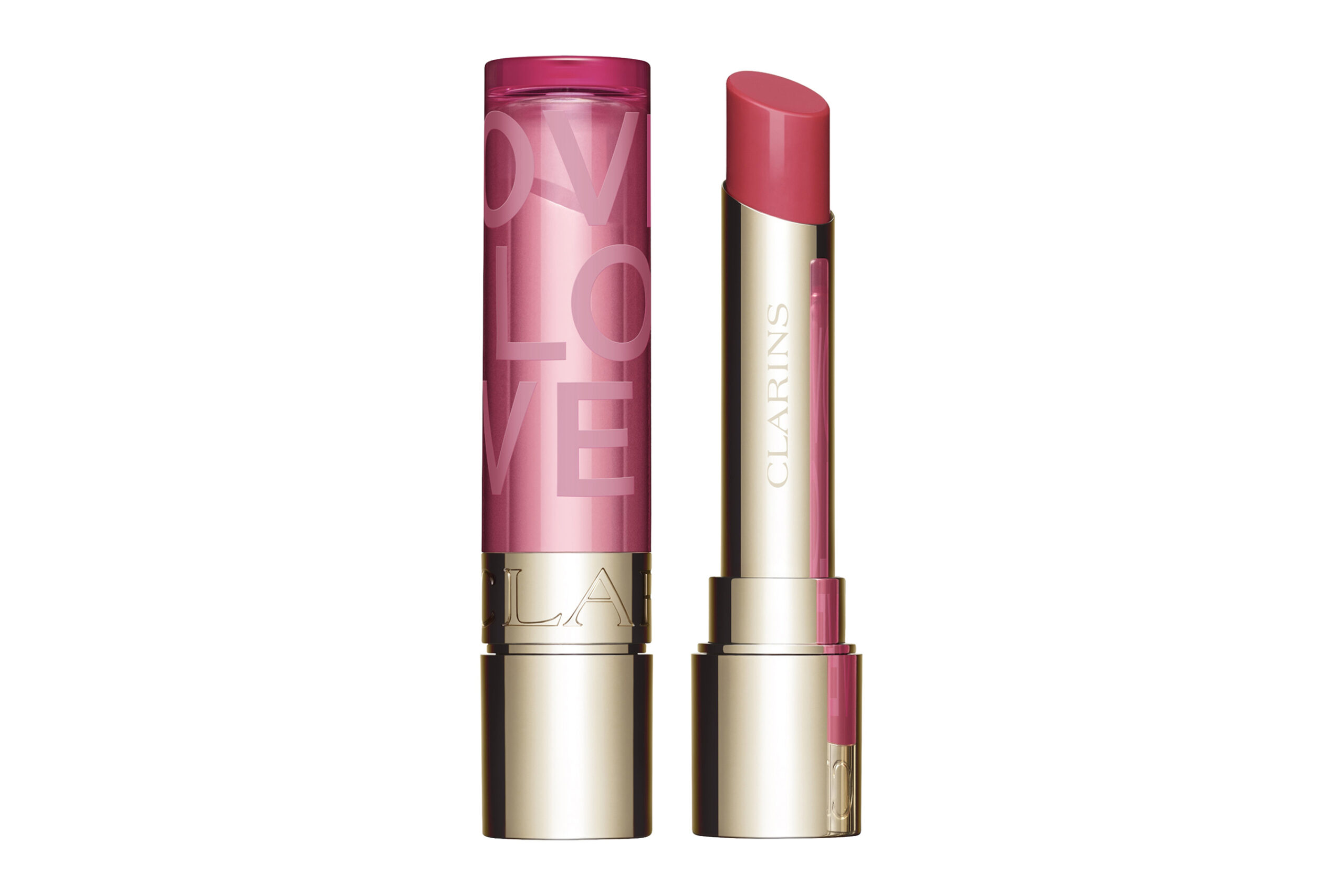 Clarins к 14 февраля традиционно запустил лимитированную коллекцию макияжа. В этом году она посвящена любви. В коллекцию вошли четыре средства с романтичной надписью LOVE на упаковке. Одно из них — как раз бальзам. В нем 99 % ухаживающих компонентов, которые дают эффект нежных, гладких и пухлых губ. Как у ребеночка.
