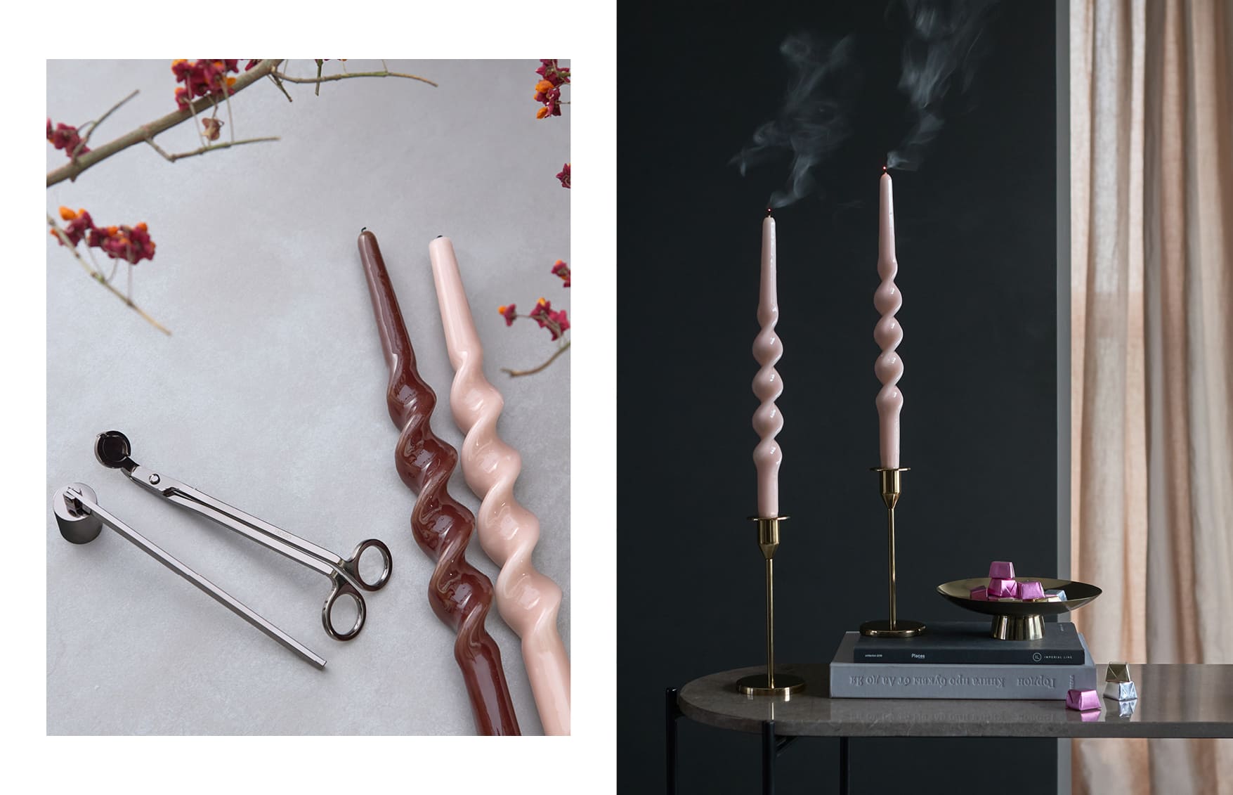 Пара свечей классической витой формы всегда будет кстати — и как элемент новогоднего стола, и как ежедневный домашний декор. Это, пожалуй, самый универсальный подарок, который можно выбрать, когда вы совсем не знаете вкусов получателя. Если хотите, чтобы ваши свечи точно использовали по назначению, — дарите их в комплекте с подсвечником, чтобы сразу можно было зажечь. А можно пойти еще дальше — добавить ножницы для подрезания фитиля и колпачок-гаситель, чтобы получился стильный и уютный набор.