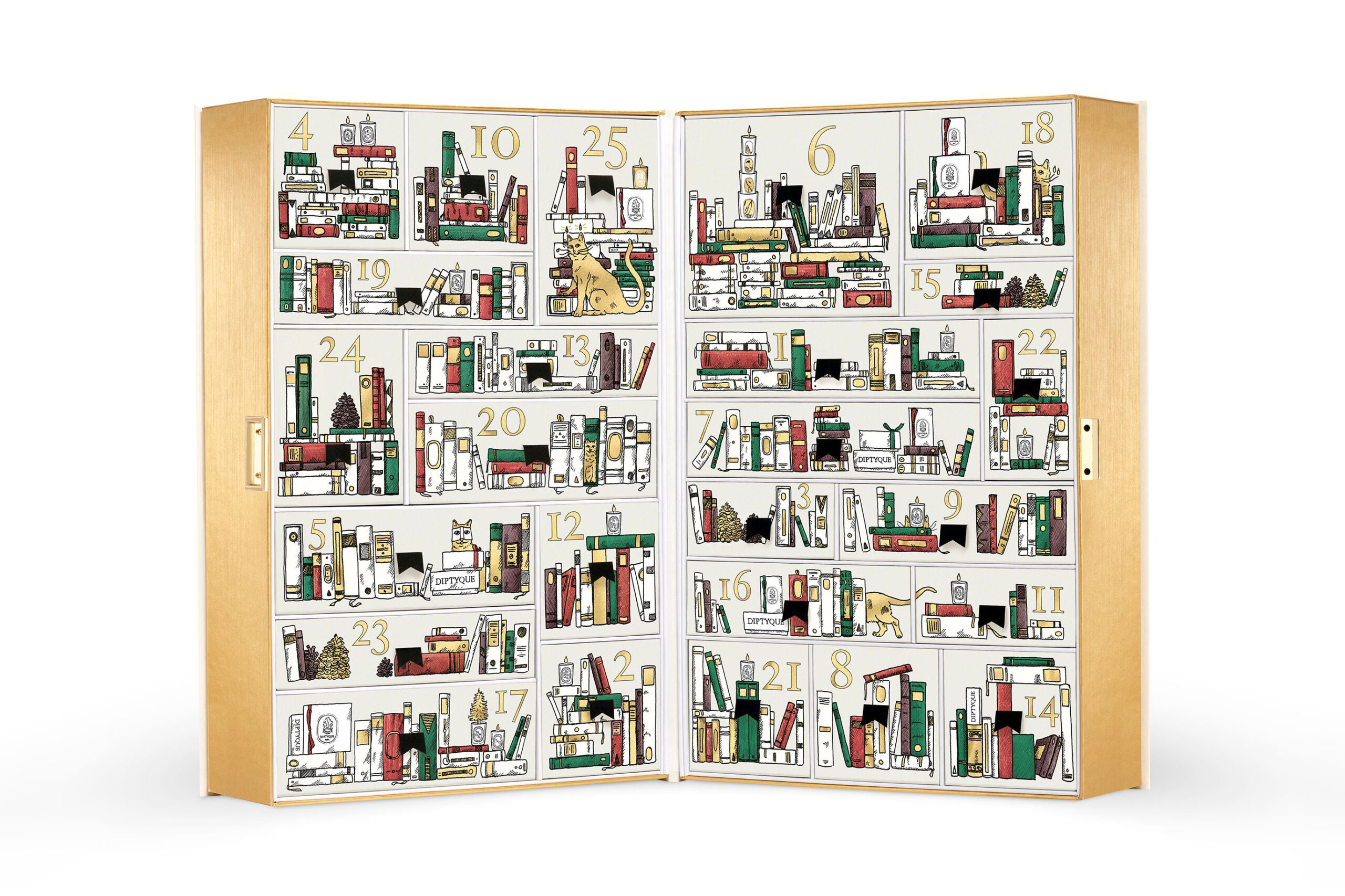 Самый дорогой и самый красивый адвент из подборки. В этом году праздничная коллекция Diptyque посвящена историям и волшебству. Этот адвент-календарь открывается как книга, отсылая к книжному в районе Сен-Жермен-де-Пре. Внутри набора множество полок, на которых прячется милый котик. Между страницами спрятано 25 ароматных сюрприза, которые помогут вам окунуться в атмосферу праздника на протяжении всего декабря.