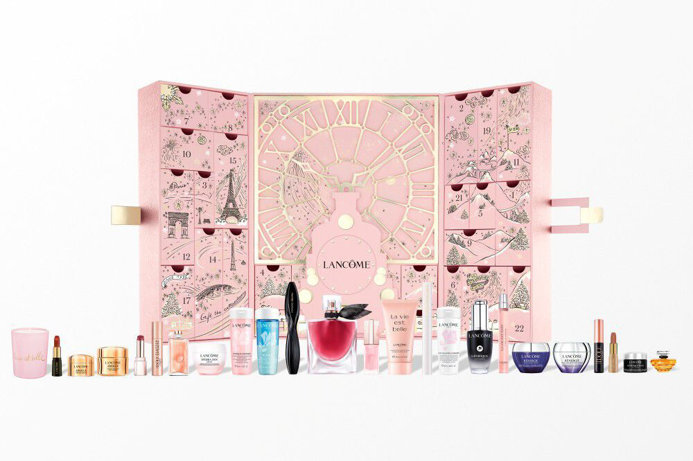 Внутри пудрово-розовой коробочки самые красивые достопримечательности Парижа, а в центре — золотые часы, напоминающие о приближении праздников. В каждой упаковке 24 бестселлера: парфюмы, косметика и средства по уходу за кожей Lancôme.