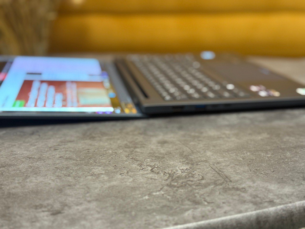 Поддержка 100 процентов цветового пространства DCI P3 и стандарта HDR True Black 500 добавляет дисплею выразительности при просмотре видео и фотографий. Цвета остаются насыщенными, но без перегрузки и кислотных оттенков, поэтому изображение не утомляет глаза и смотрится естественно. Яркость около 400 кд м² позволяет спокойно использовать ноутбук при дневном освещении в кафе, коворкингах или рядом с окном без необходимости выкручивать подсветку на максимальные значения.