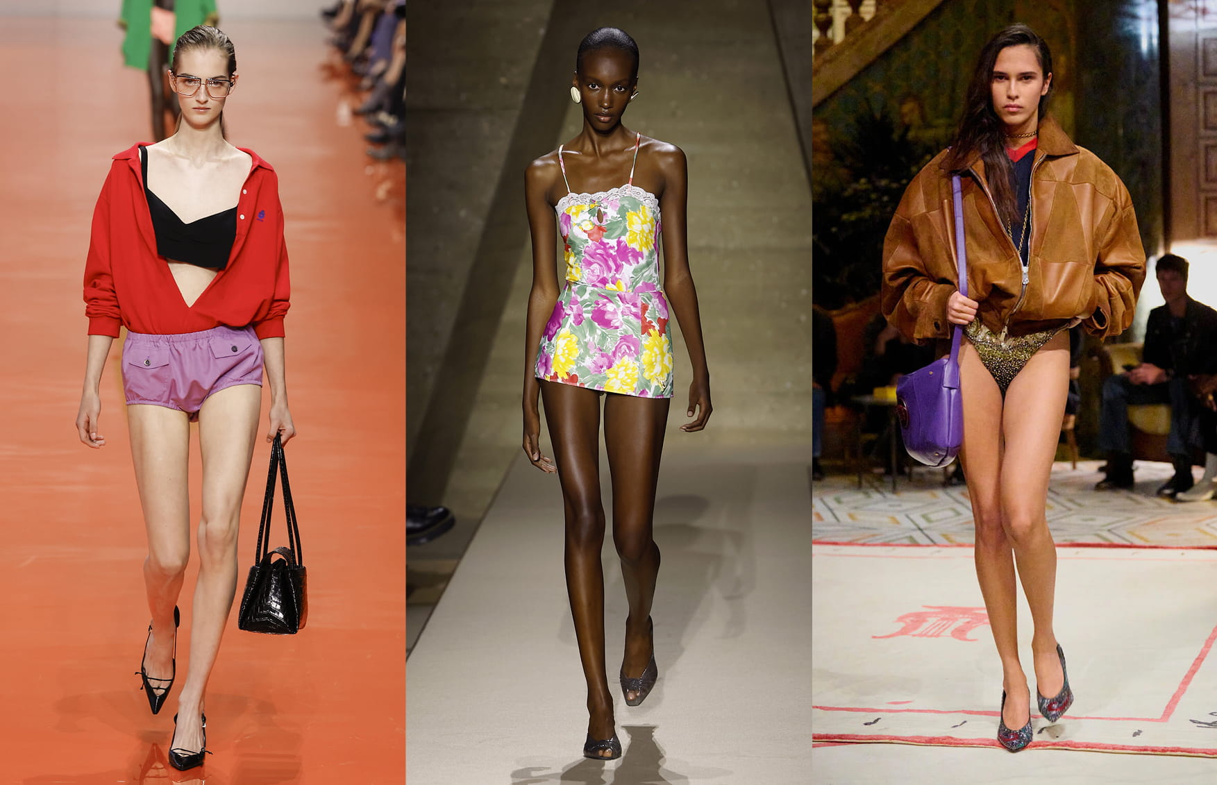 Мини возвращается, но без подростковой дерзости: короткие платья с цветочным принтом, мягкие кожаные юбки, еле прикрывающие ягодицы, и изящные трусы-шорты призваны демонстрировать стройные ноги.
