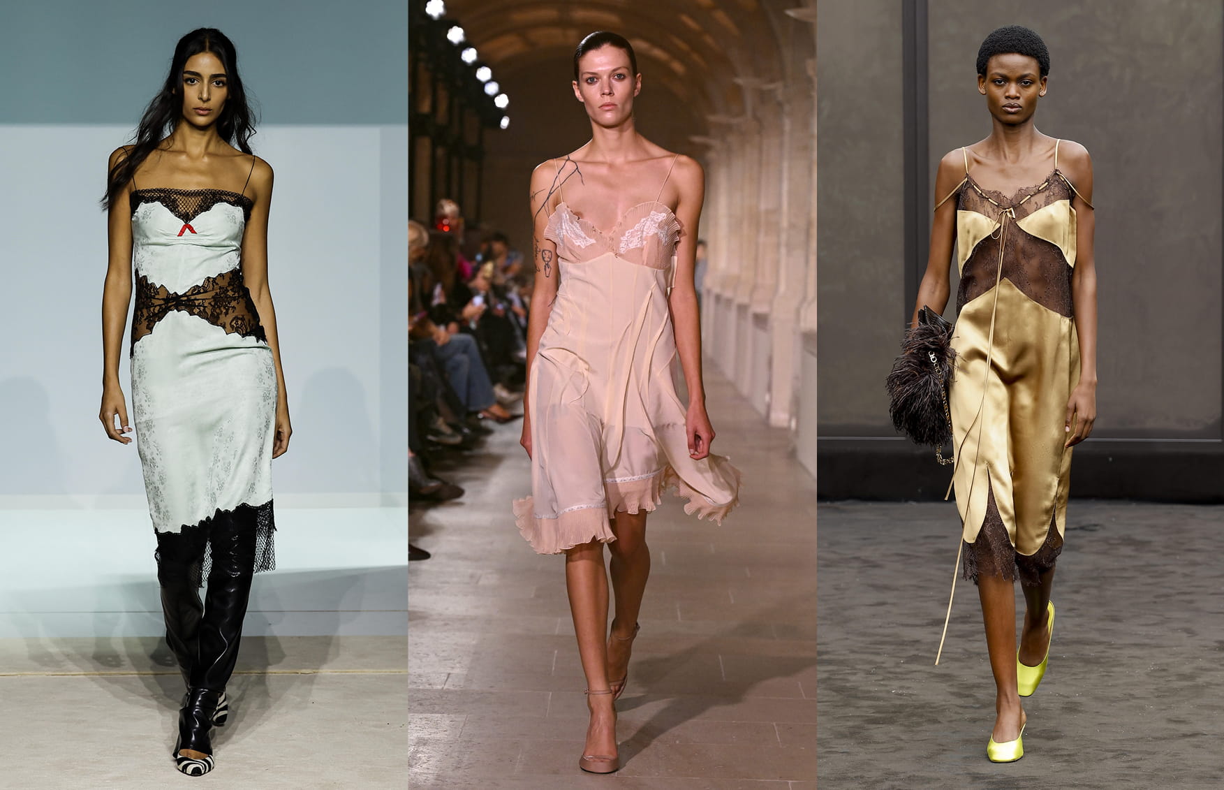 Платье-комбинация — оружие соблазна: струящиеся ткани, кружевные детали, деликатный блеск шелка. Сексуальность здесь не кричит, а шепчет.
