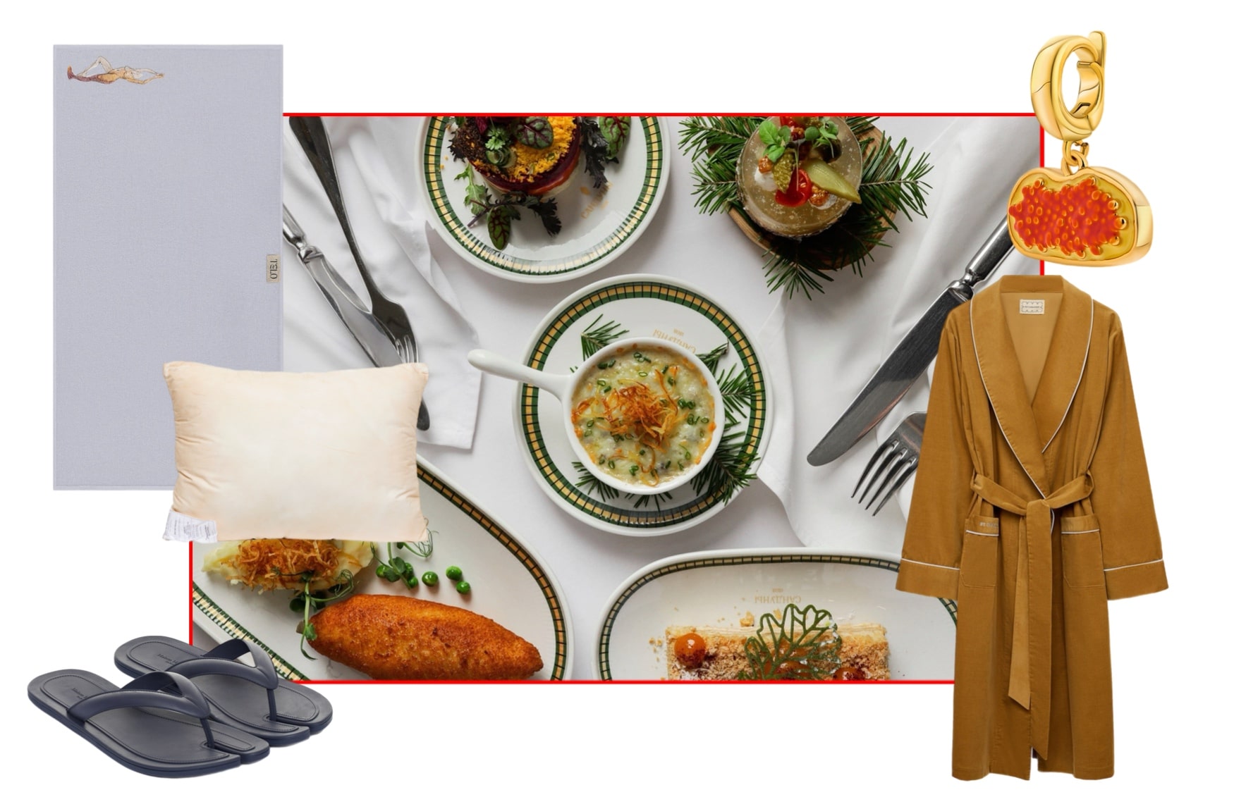 Для нестандартного празднества — нетривиальный наряд. Вместо пышных платьев и перьев — уютный вельветовый халат, удобные таби, подвеска с «красной икрой» и сумка-подушка. Мало ли сон накроет до того, как вечеринка подойдет к концу.