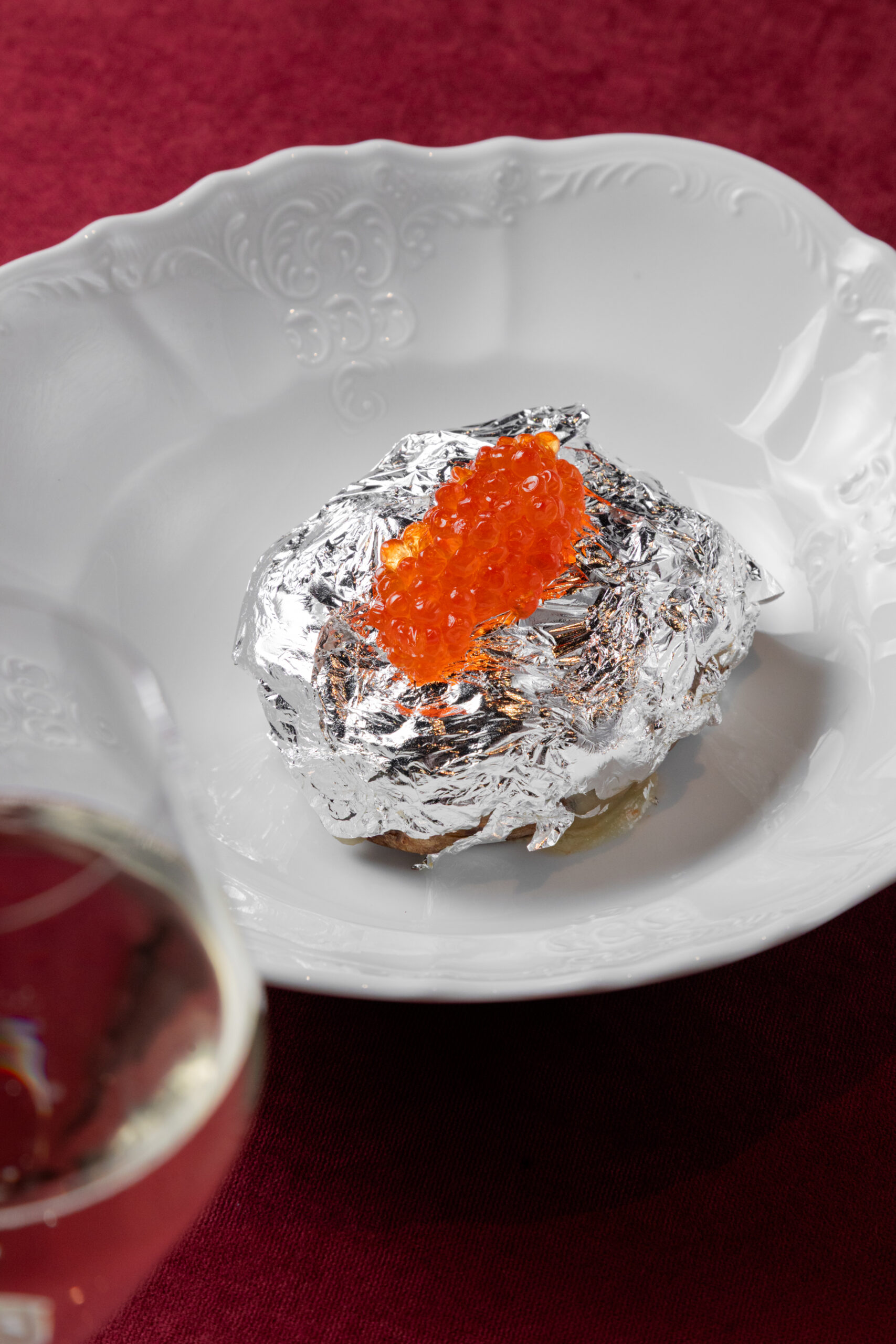 - Бриошь с лангустинами / икорный соус / сыр с травами — 690 руб.;