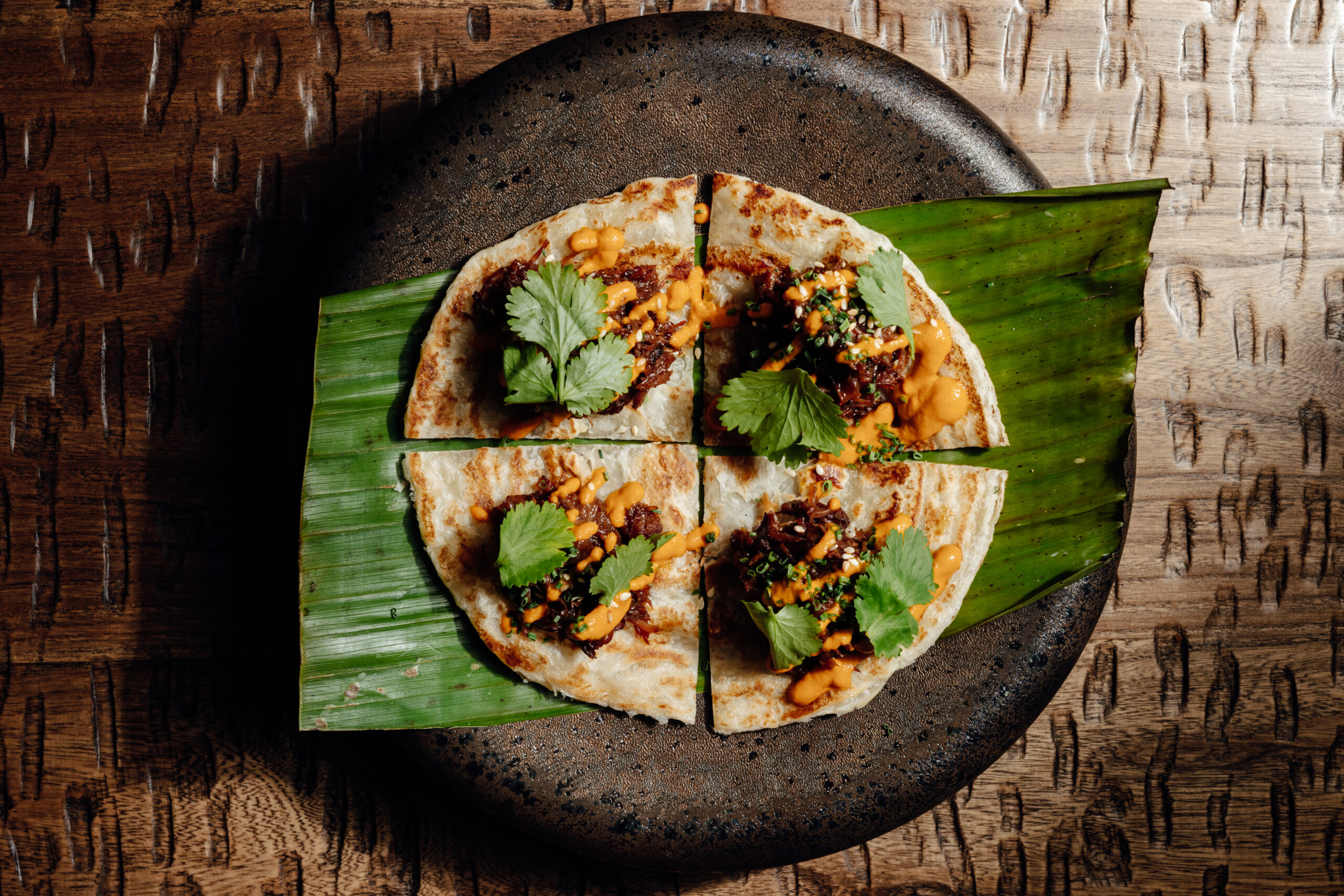 - Эмпанадас «Аль пастор» (цыпленок, крем из маринованного лука-порей, компрессированный дайкон) — 780 руб.;