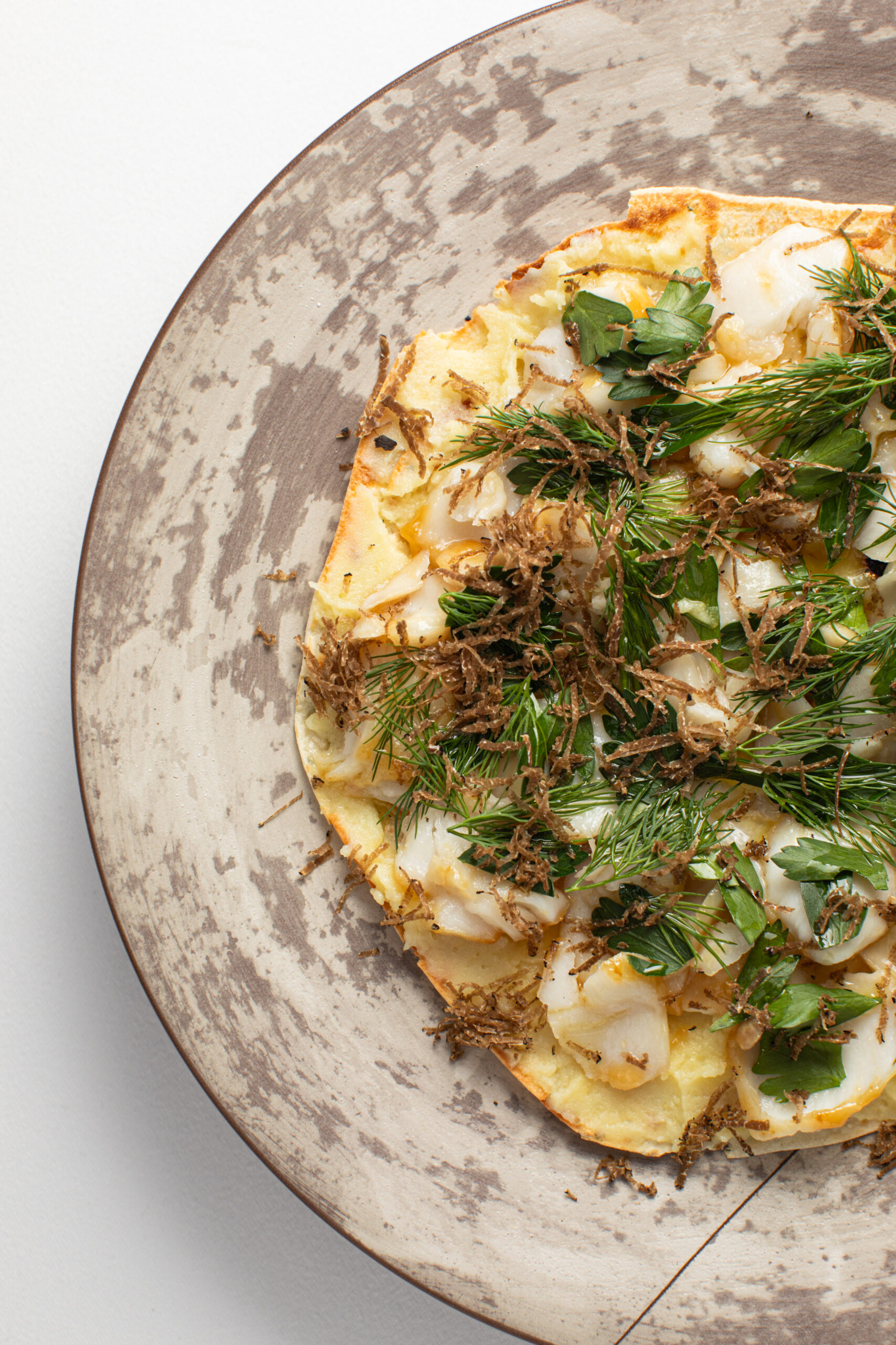 - Кыстыбый с картофелем, угольной рыбой и черным трюфелем — 2 400 руб.;