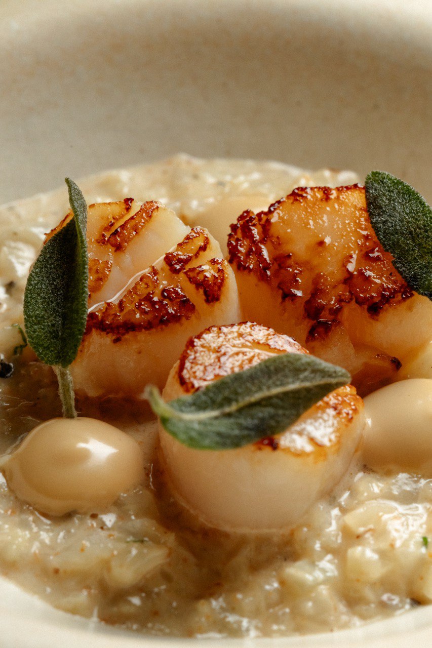 - Тартар из гребешка с майонезом из жареного гребешка и томатной темной водой — 1 950 руб.;