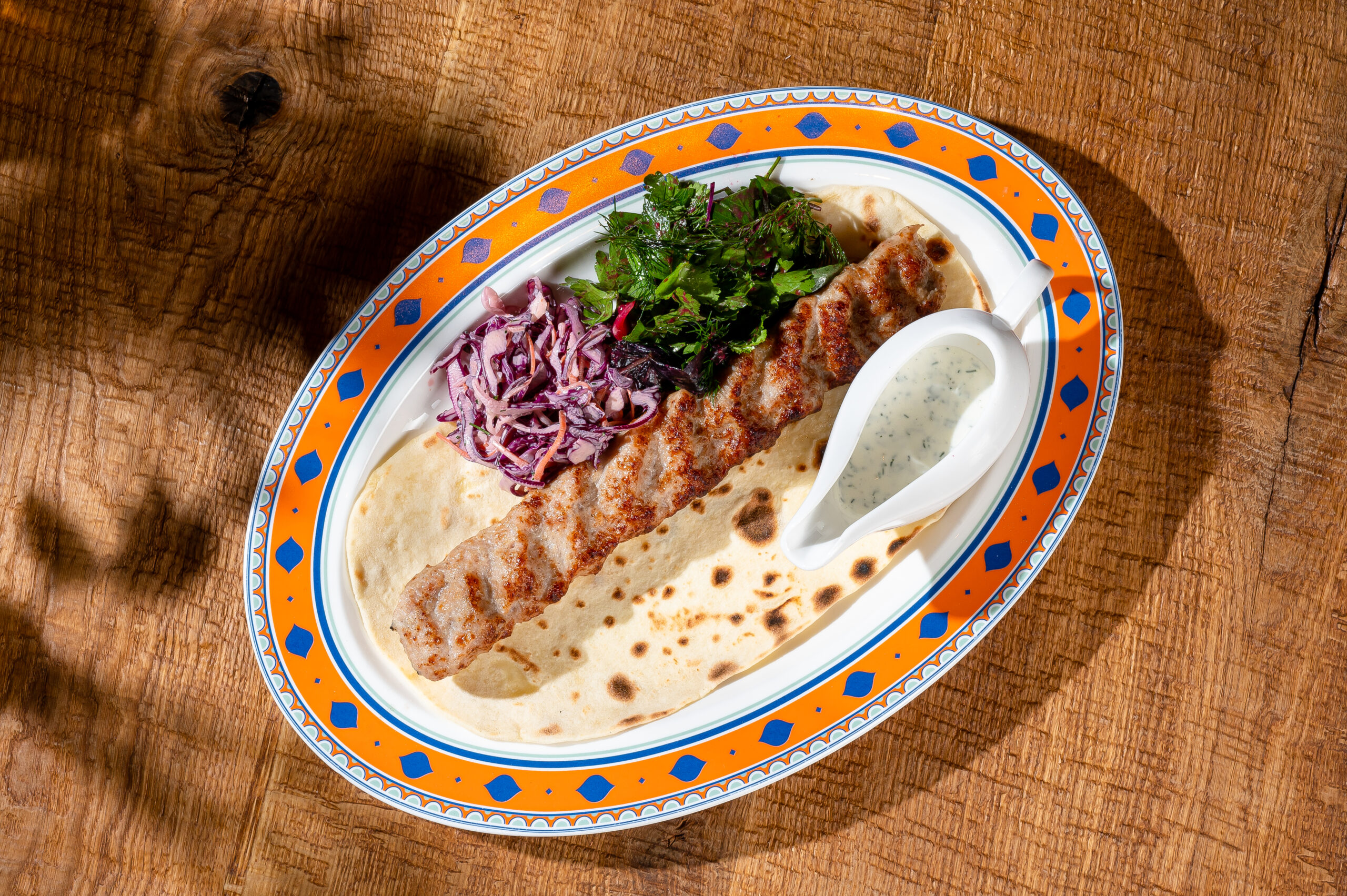 - Адана кебаб с соусом аджили и коул-слоу — 1 300 руб.;