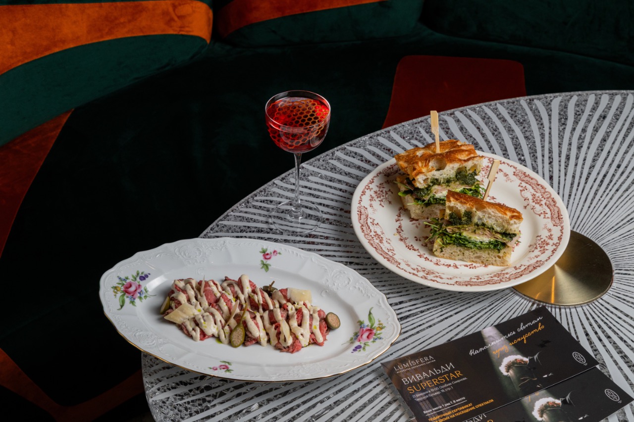 В сет Lucio входят коктейль Il Prete Rosso, вителло тоннато и фокачча с мортаделлой и страчателлой. При заказе гость автоматически становится участником розыгрыша билетов в особняк Смирнова и получает промокод на скидку.