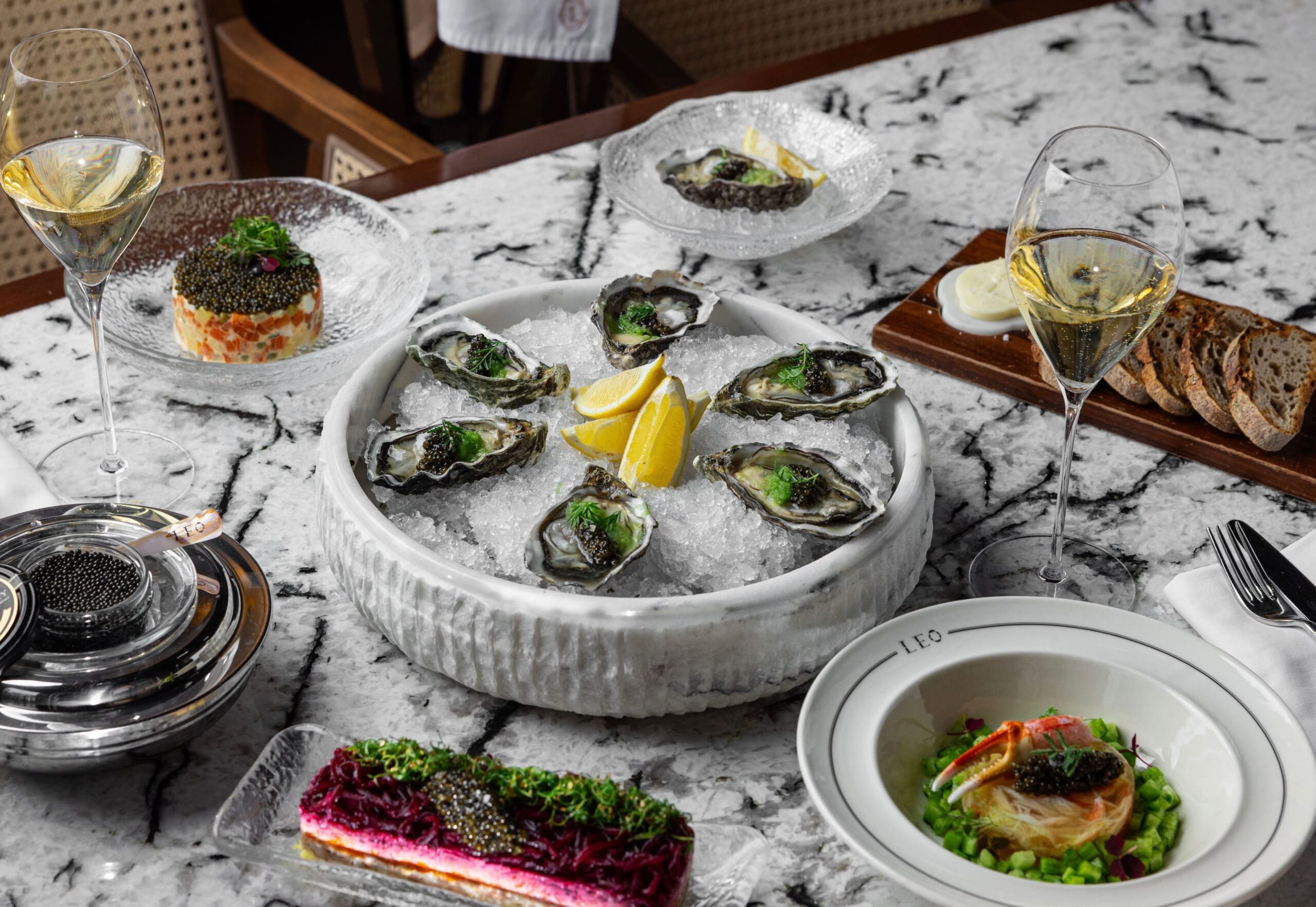 В ресторане LEO появился особенный новогодний спешл в коллаборации с французским домом шампанского Lanson. Тут французские устрицы Жилардо с черной икрой, заливное из краба, сельдь под шубой, оливье с лосем и черной икрой. Даже на слух звучит как праздник. Возрастное ограничение: 18+