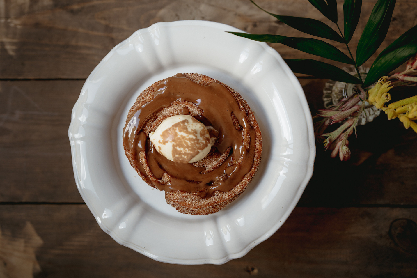 Испанский вариант пончиков шеф-повар Марко Антонио Феррейра готовит из заварного теста, затем обжаривает в масле и посыпает сахаром с корицей. Обычно чуррос — это ребристые палочки из теста, которые нужно макать в горячий соус. В Sangre Fresca это скорее булочка, напоминающая фактурой и из-за корично-сахарной смеси чешский трдельник. Плюс соус на основе молочного шоколада и сливок с добавлением стручков ванили, соли и сахара. Решительную и жирную точку ставит шарик ванильного мороженого.