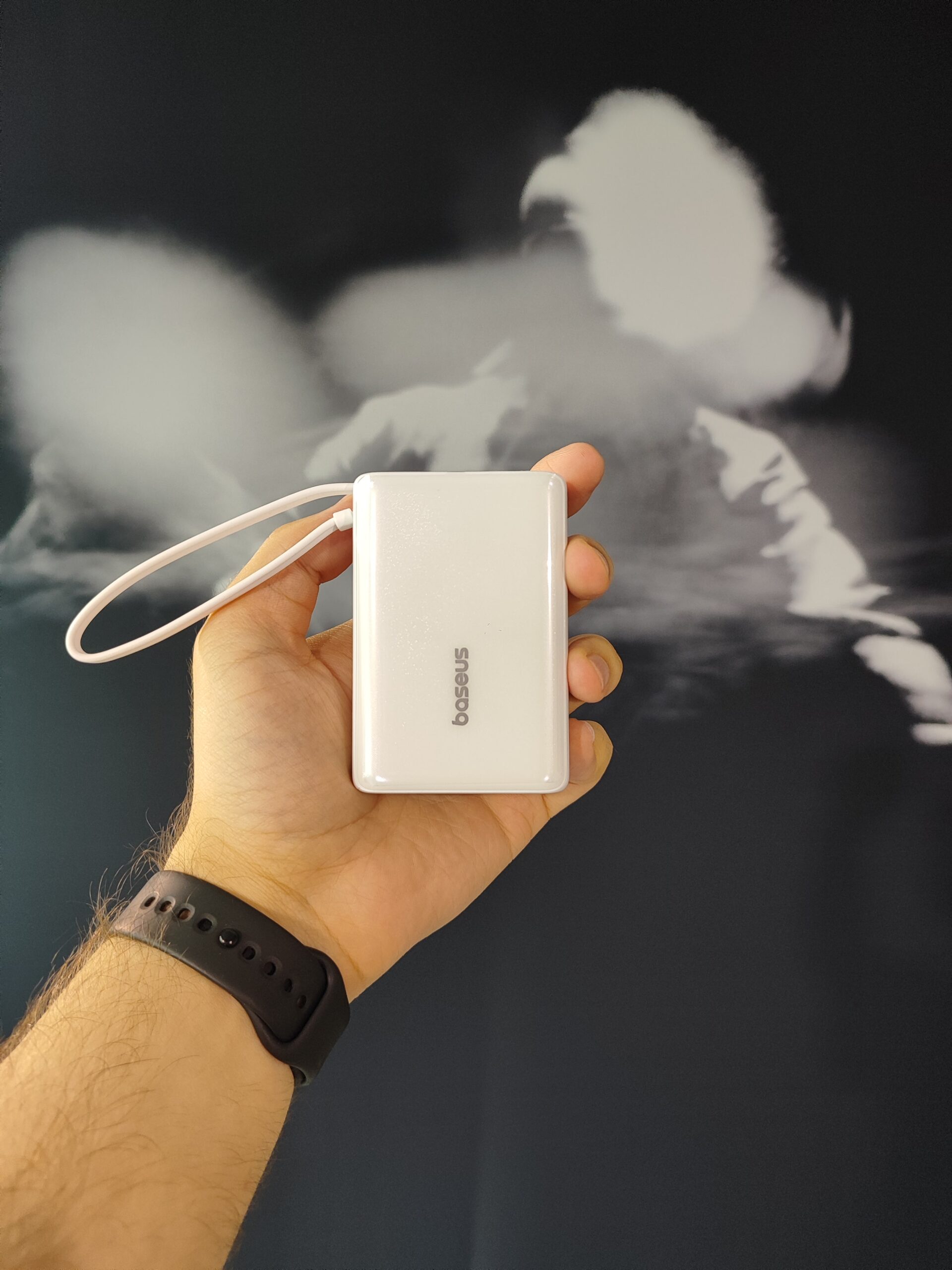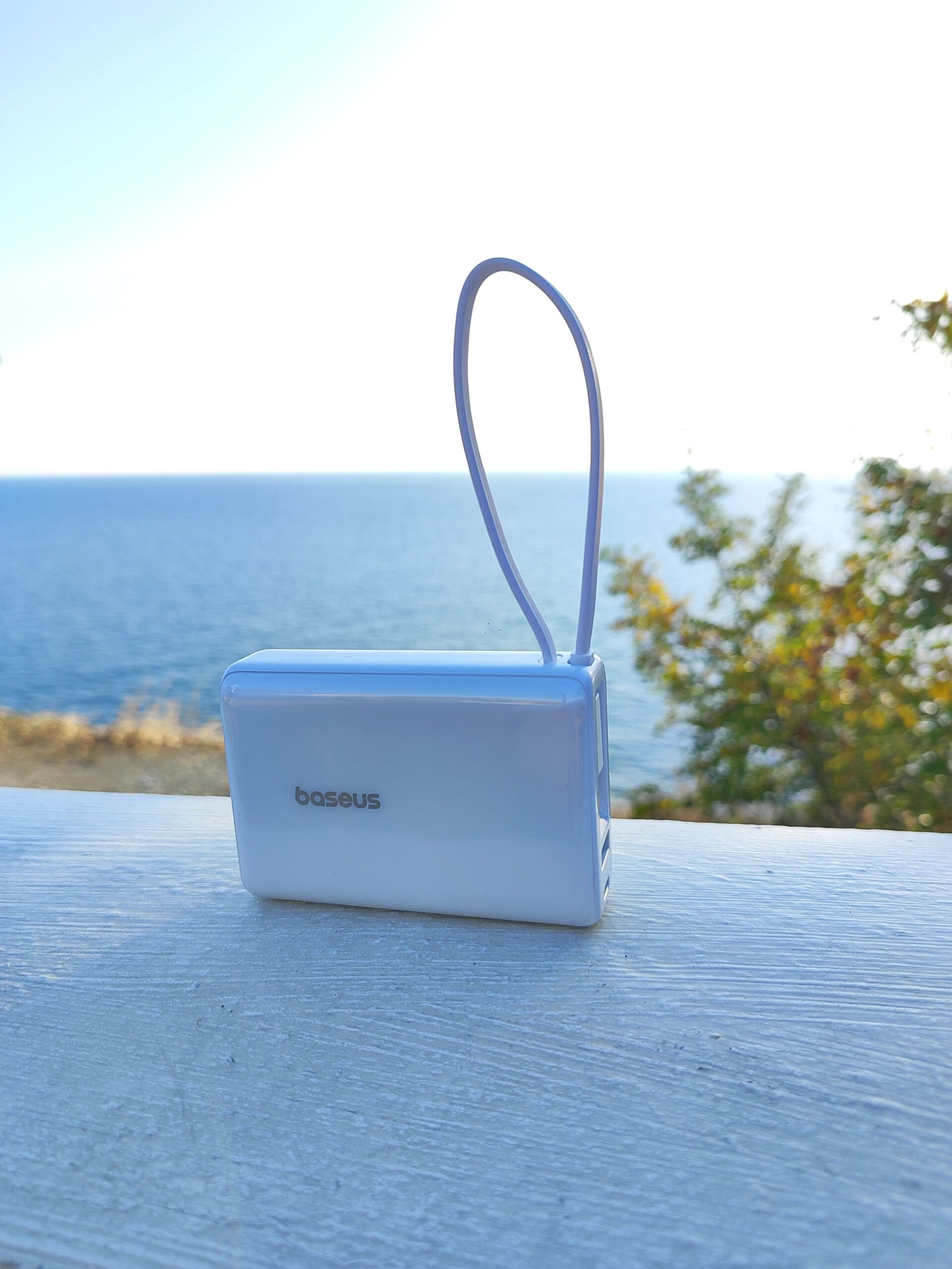 Помимо компактных размеров, у устройства есть встроенный кабель. Это удобно — никаких лишних проводов, и стильно — он выглядит как симпатичный ремешок. Поддержка быстрой зарядки 45 Вт позволяет оперативно восстановить заряд. Еще одно преимущество — одновременно можно заряжать сразу несколько устройств. Этой особенностью пауэрбанка во время фестиваля я пользовался не раз, когда между сеансами приходилось заряжать и ноутбук, и смартфон. С задачами Baseus PicoGO 45 Вт справился отлично — за отведенные полчаса зарядил телефон больше чем наполовину и не позволил отключиться ПК. А еще у устройства есть удобный цифровой дисплей, который позволяет контролировать остаток заряда в реальном времени.