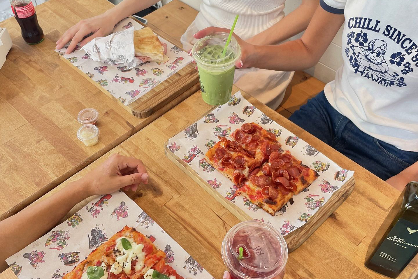 Если хочется джанк-фуд, то можно заглянуть в Chill Since’93 на задворках The Grove — там готовят приличную прямоугольную пиццу и не менее классные хрустящие сэндвичи. Плюс недорого.